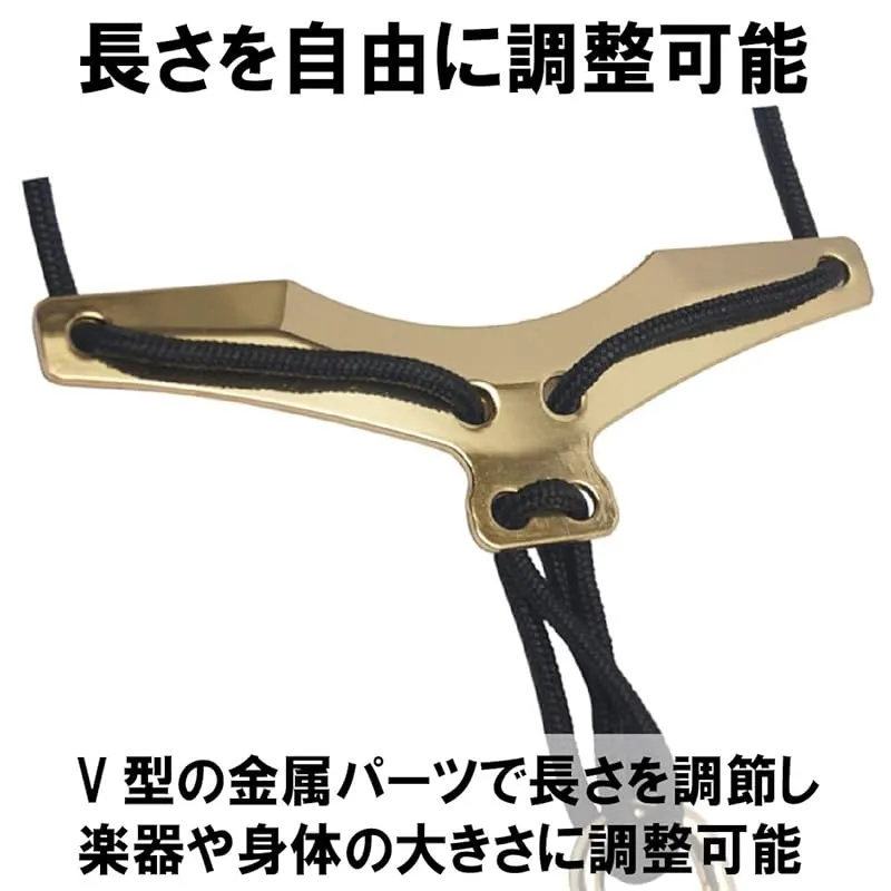 ストラップはぴったりサイズに調整可能:ストラップはV型の金属パーツに繋がっていて、このパーツでストラップの長さを調整し、楽器や身体の大きさにぴったり合わせることができます。ひとつのストラップを複数のプレイヤーで共用することもできるので、クラブ活動などで共用することも可能です。