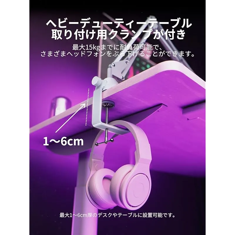 【L字型ヘビーデューティーテーブル取り付け用クランプが付き】 CACENCAN M06マイクアームスタンドは丈夫な金属製のL字型テーブルマウンティングクリップが付いており、最大15kgまでに耐負荷可能で、さまざまヘッドフォンをぶら下げることができます。 最大1~6cm厚のデスクやテーブルにしっかりな設置可能です。 クランプは保護クッションを搭載した、天板にキズを避けたい方をおすすめます。