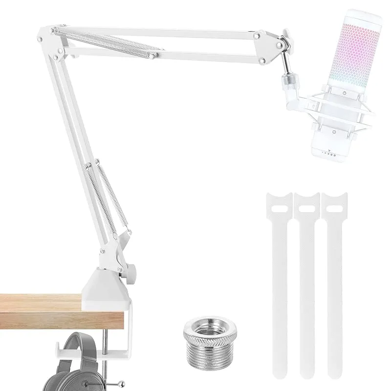 【お届けするもの】HyperX QuadCastマイクシザーアームスタンド*1、ヘビーデューティーテーブル取り付け用クランプ*1、ネジアダプター*1(3/8 "から5/8"はほとんどのマイクとショックマウントに適用)、ケーブルバンド*3。