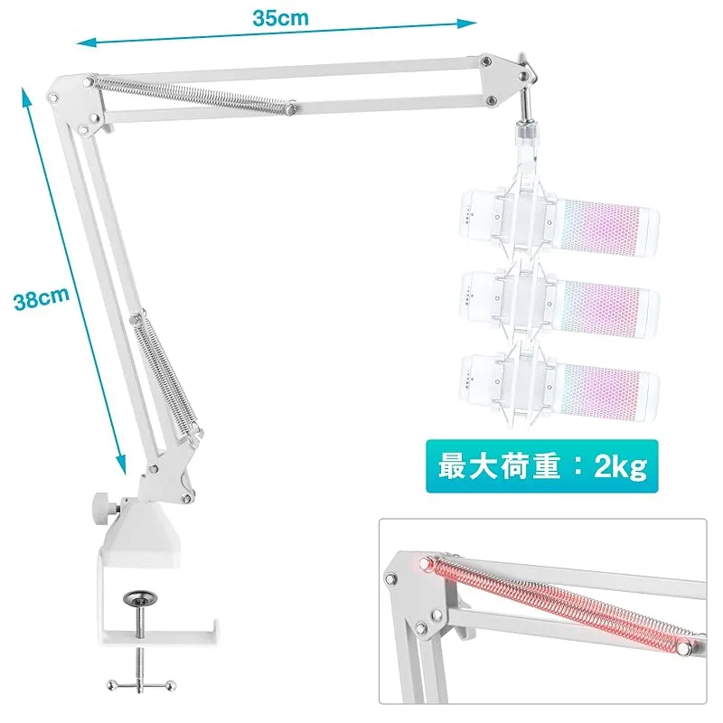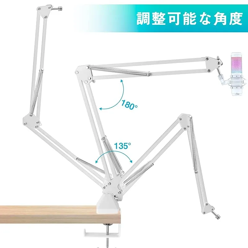 【安定性】このマイクブームアームは、各アームに高品質のデュアルサスペンションスプリングを備えており、HyperX QuadCast Sマイクを震動、沈み込みから保護し、騒音の発生を防ぐことができます。