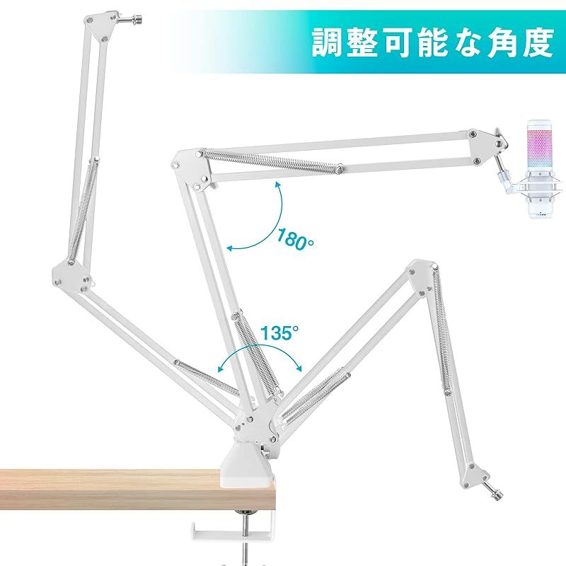商品名:EmJTao QuadCast Sブームアームマイクスタンド、HyperX QuadCast用調整可能なサスペンションブームシザーアームスタンド、QuadCast S?RGBUSBコンデンサーマイク(白)
