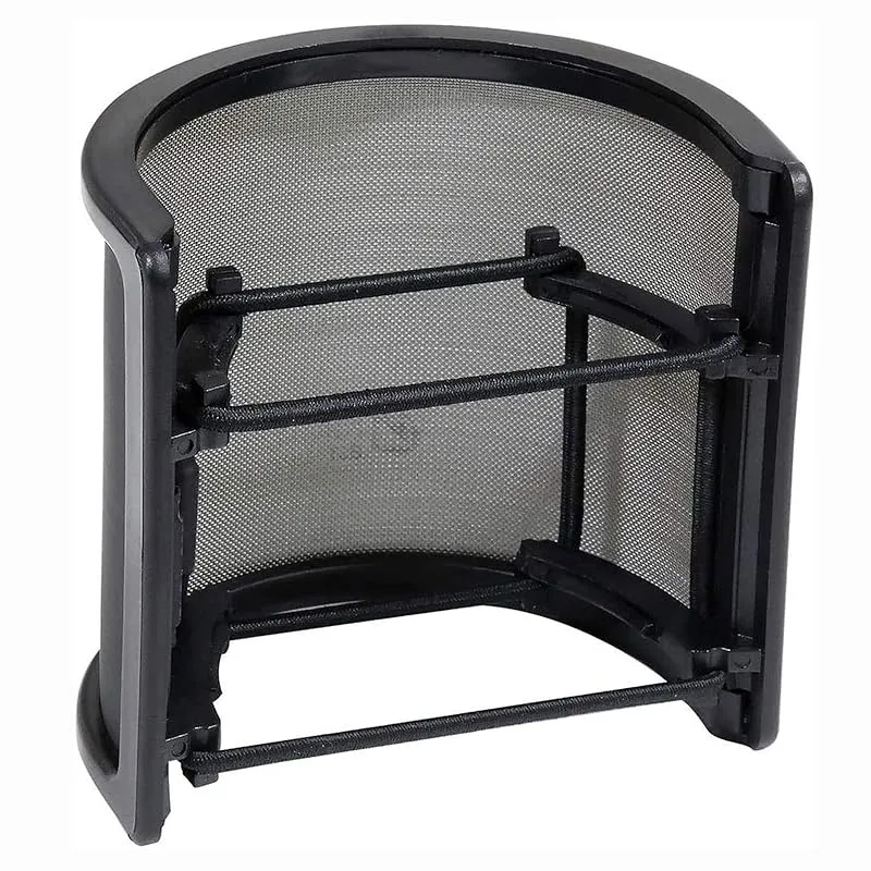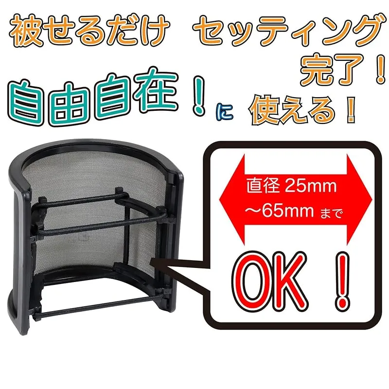 伸縮性のあるバンドで直接マイクに固定できるポップフィルター