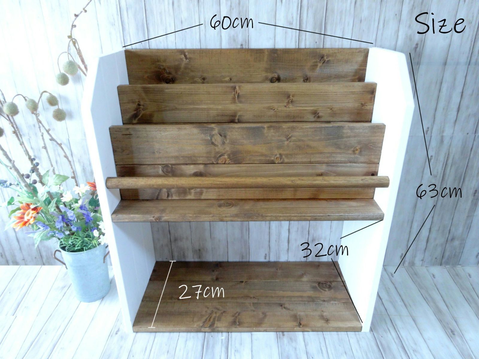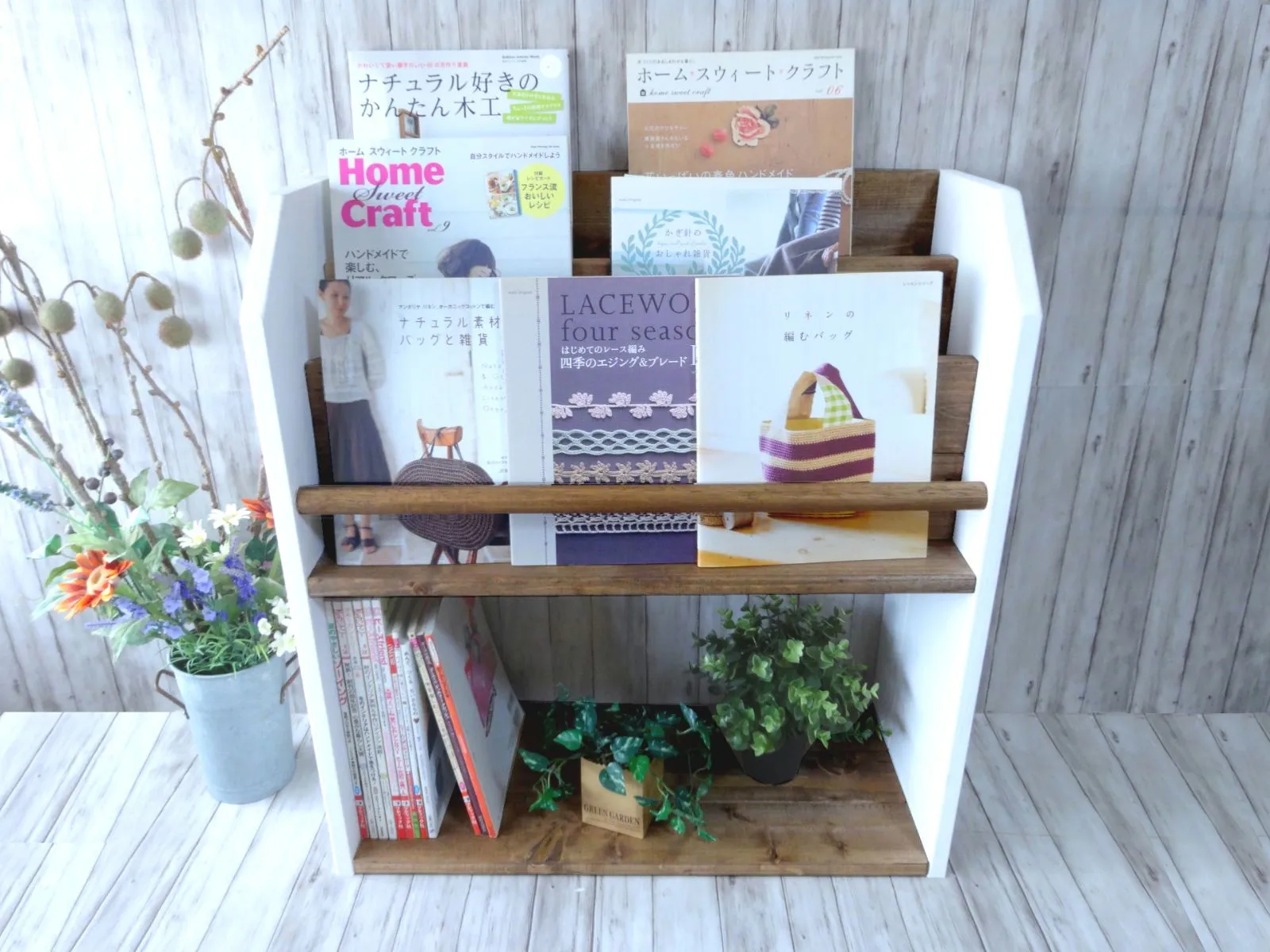 下部の棚面は32cmの高さで大型サイズの雑誌にも対応します。