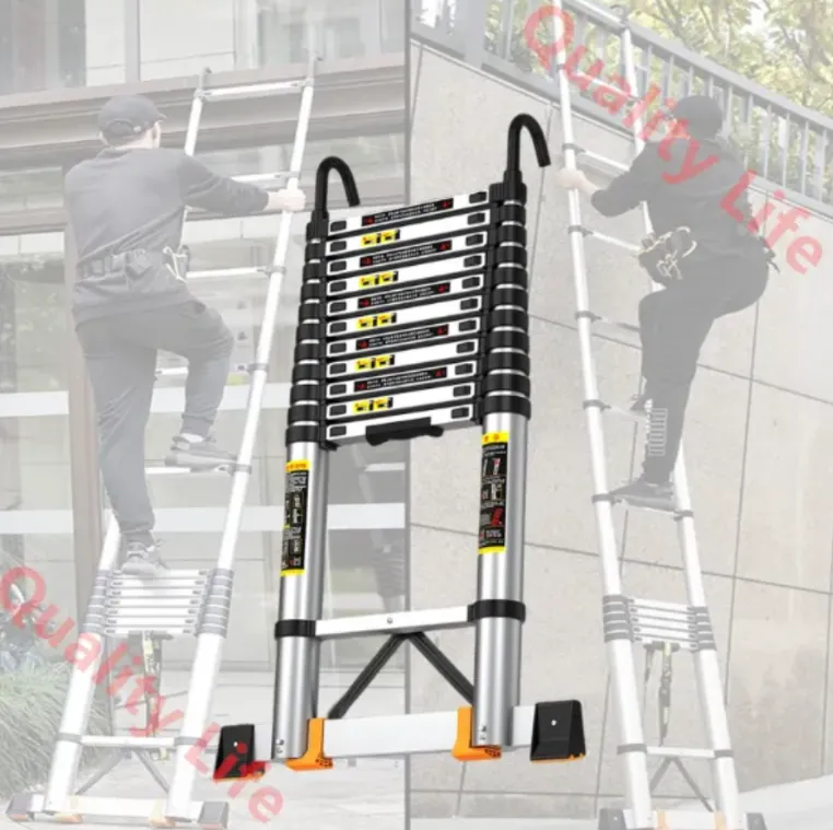 この伸縮式はしごは、高強度の航空グレードのアルミニウム合金で作られています。頑丈で耐久性に優れ、強力な耐荷重性を備えているため、高所でのあらゆる作業でも安定した状態を保つことができます。独自の伸縮構造により、実際のニーズに応じて高さを自由に調整できます。完全に拡張すると、複数階の運用のニーズを満たすことができます。収納時は小さなスペースしか占有せず、車の後部や収納キャビネットに簡単に収納できるため、すぐに使用でき、便利に保管できます。また、滑り止めペダル、滑り止めフットパッド、安全バックルなどの複数の保護機能が装備されており、安全性を完全に確保します。