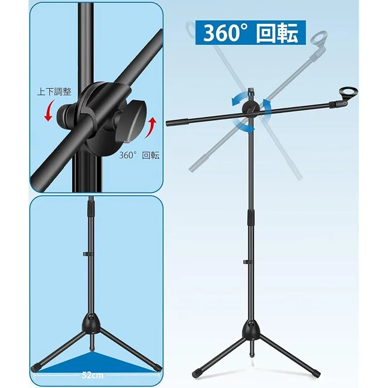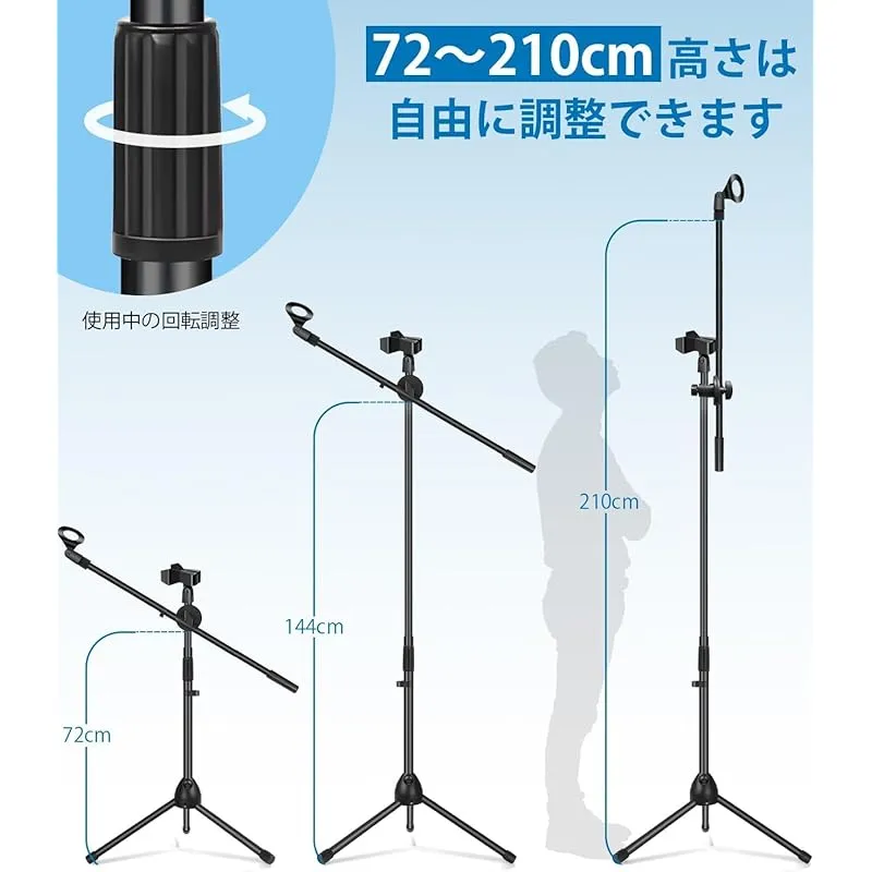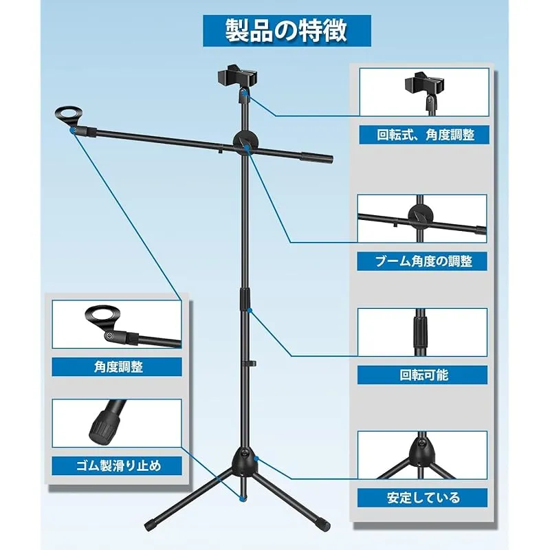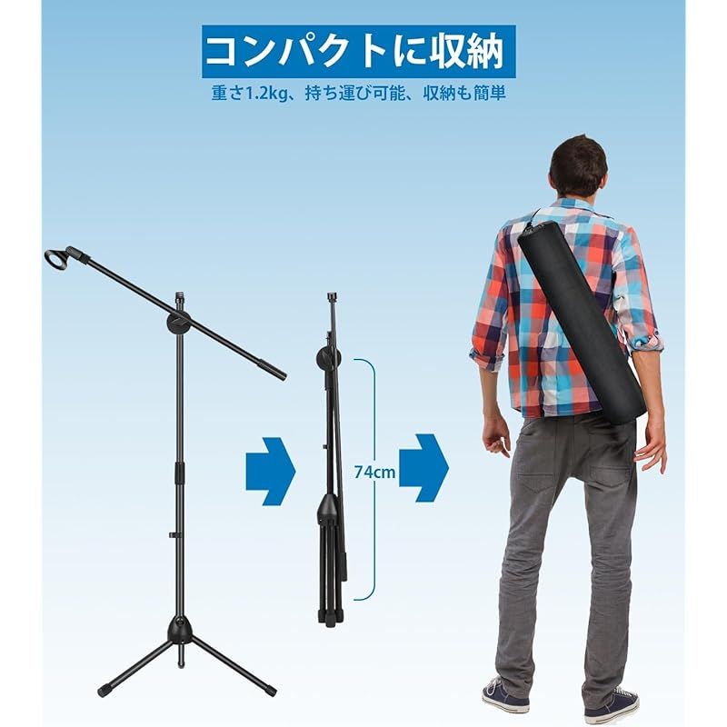 商品名:EmJTao マイクスタンド 折りたたみ式マイクスタンドブーム 180°調整可能 演奏 会議 スピーチ 講習 ライブスピーチ 忘年会 カラオケ 録音 ポータブル三脚スタンド マイクホルダー×2 ケーブルクランプ×4 収納袋付き