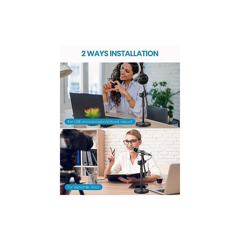 万能な構成 - マウキーデスクトップマイクスタンドは、放送、ポッドキャストの録音、ラジオ番組、ライブパフォーマンスに適しています。キックドラムやアンプなどにも使用できます。