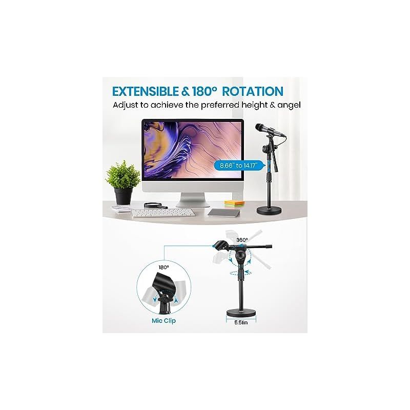 柔軟な高さ調整 - このテーブルマイクスタンドの高さ調整範囲は、ギアロック付きで8.66インチから14.16インチで、マイクを安定させ、快適な高さと距離で完璧に配置できます。