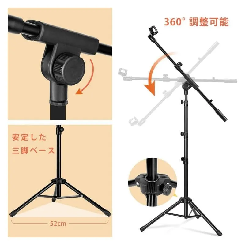 【360°調整・ゴム足付き】このマイクスタンドは、360°自由にマイクスタンドのブーム角度を調整でき、もっと快適です。また、ゴム足が付いて、滑り止めることができ、よく保護できます。