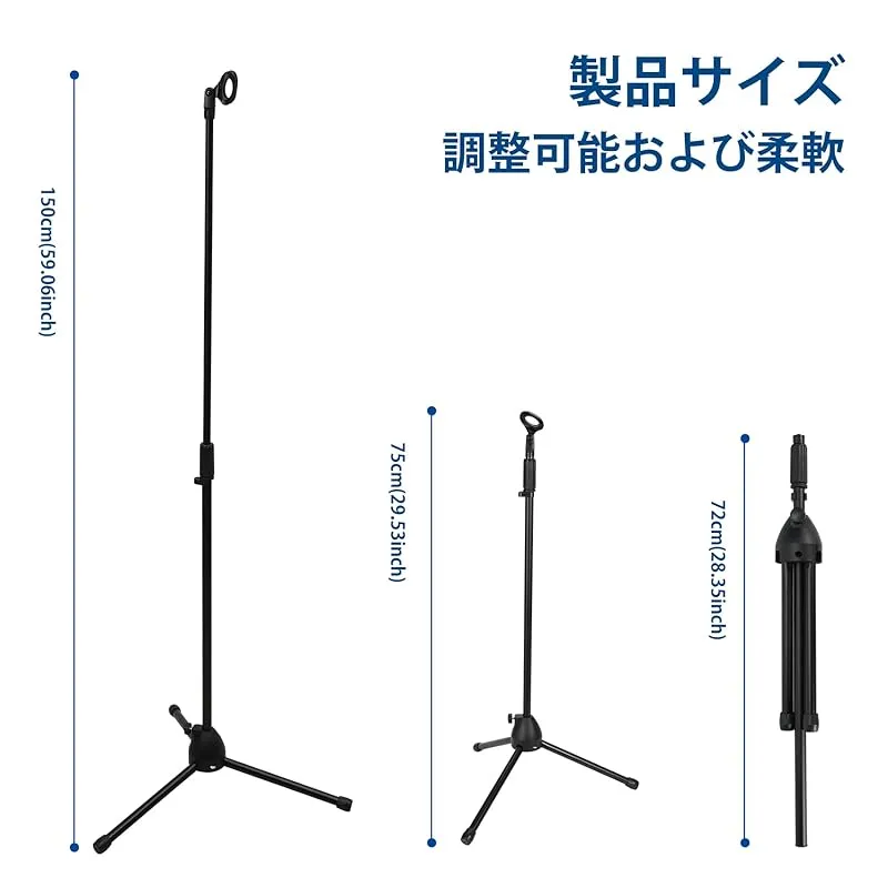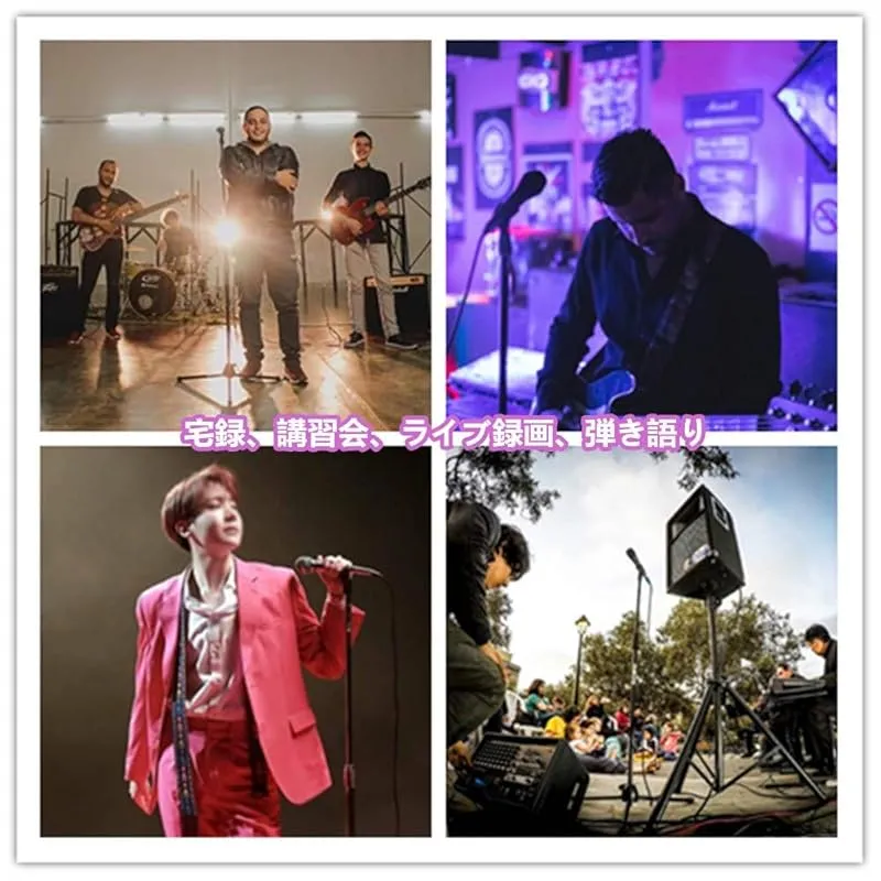 ストレートタイプ兼用、使いやすいマイクスタンド、宅録、講習会、ライブ録画、弾き語りの際にはボーカルマイク用・アコギ集音マイク用。 様々な音楽シーンで活躍します。