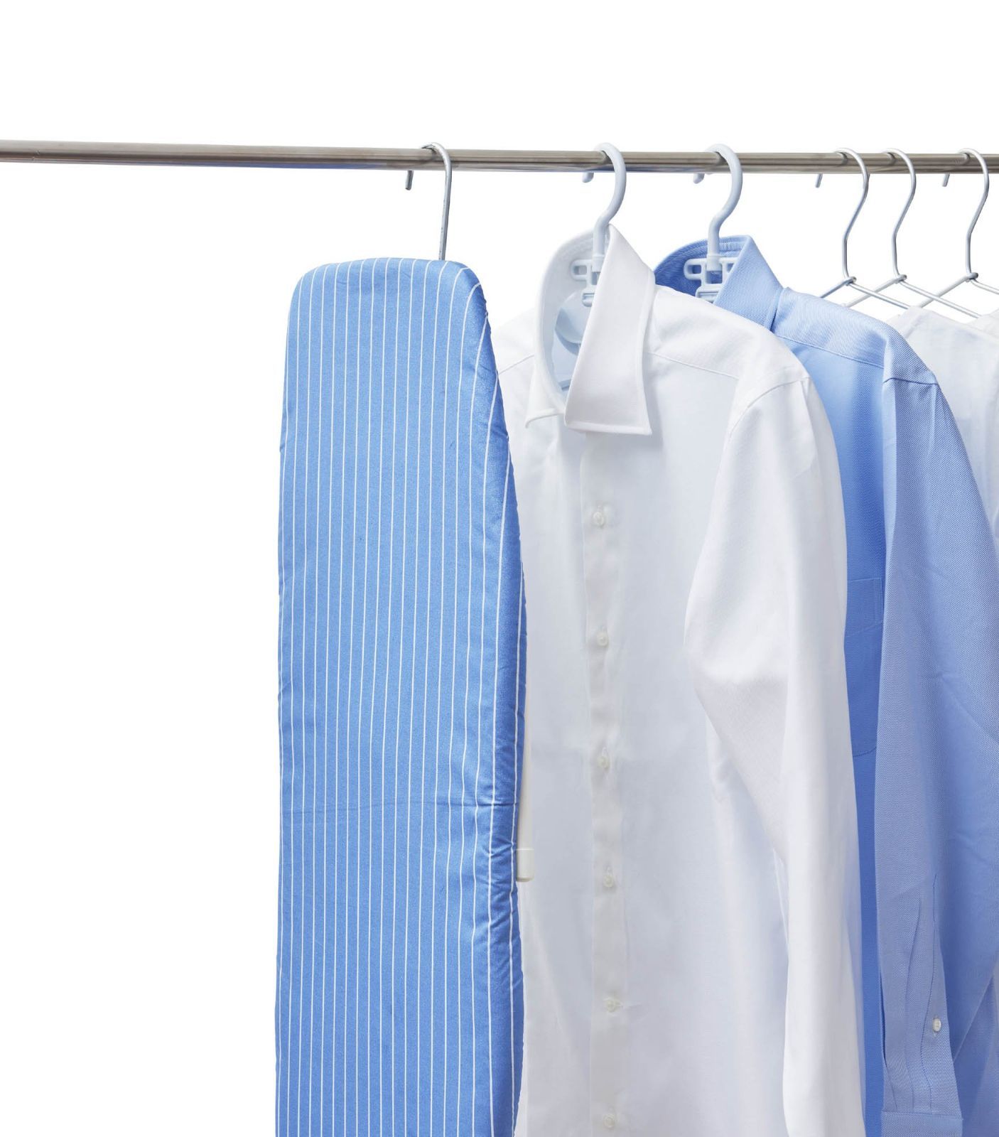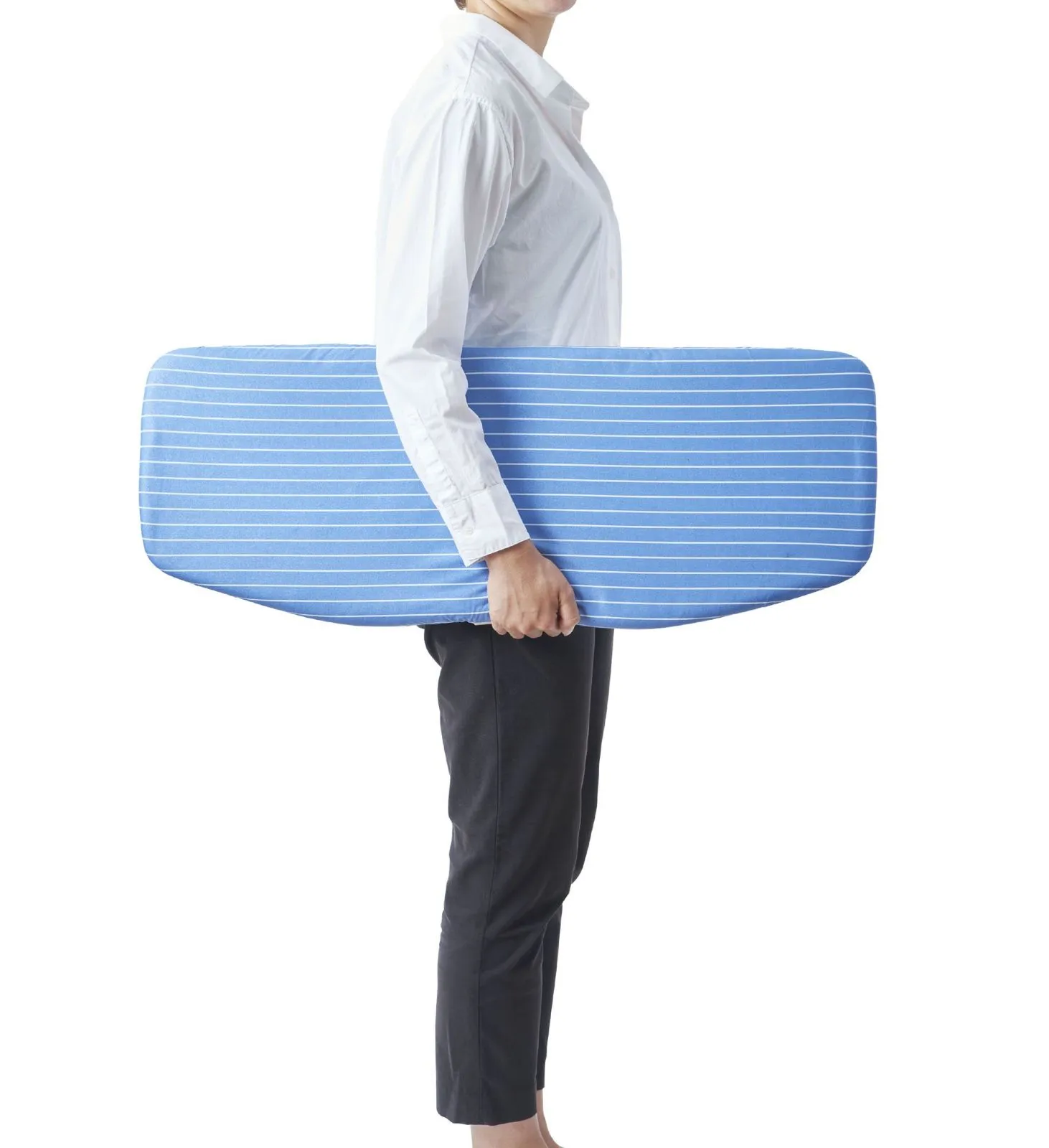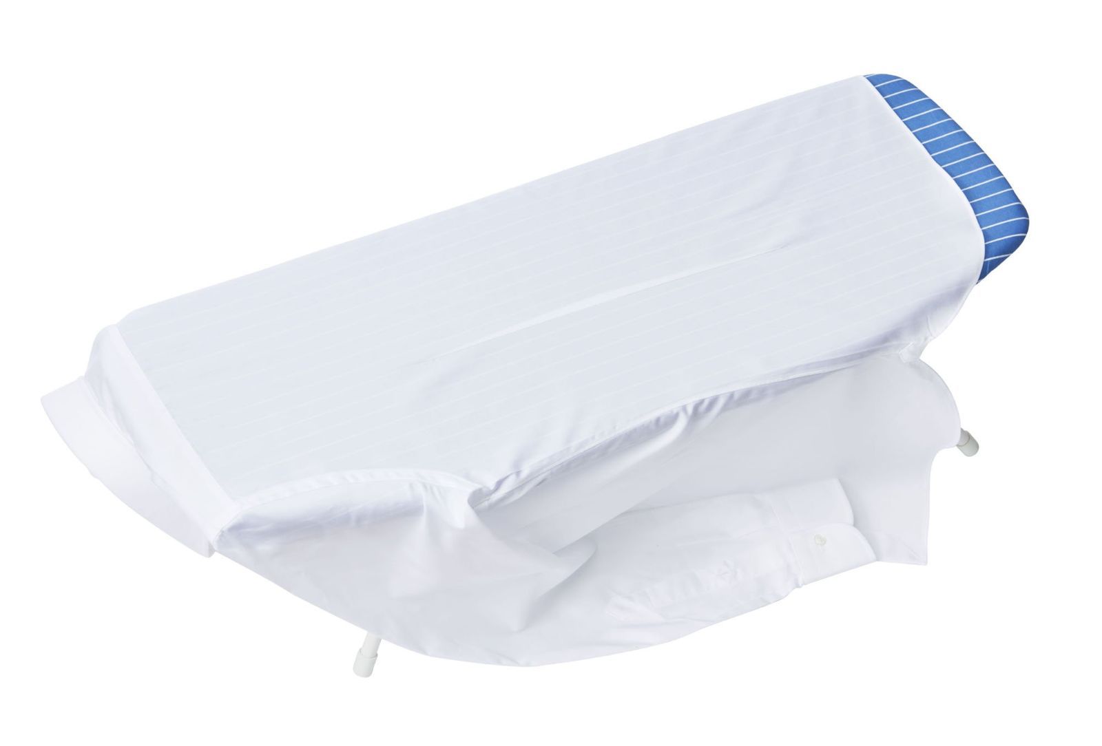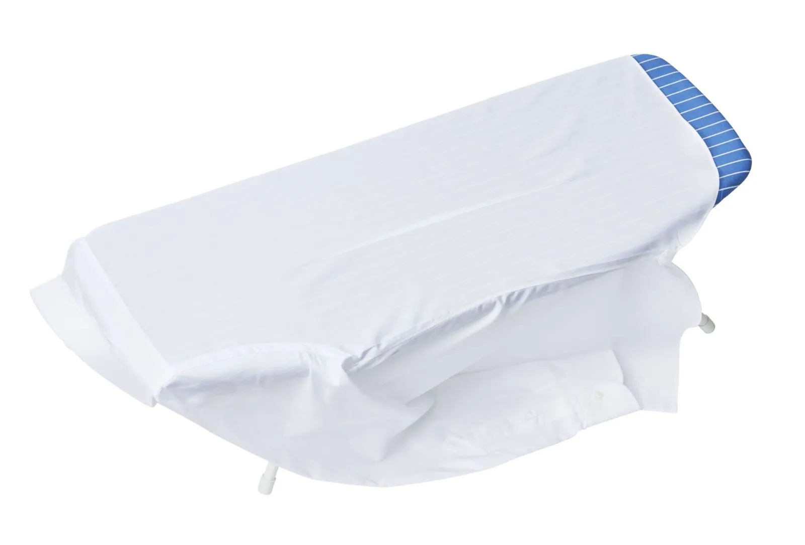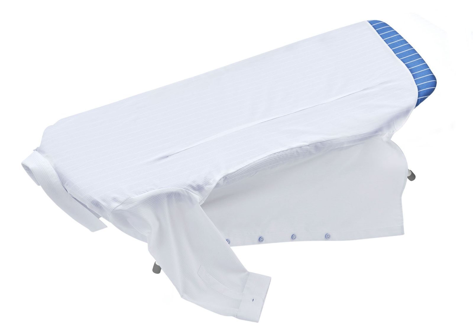 シャツがぴったりフィットするくびれ形状のアイロン台カバー。ワイシャツのアイロン掛けをラクに素早く行える。