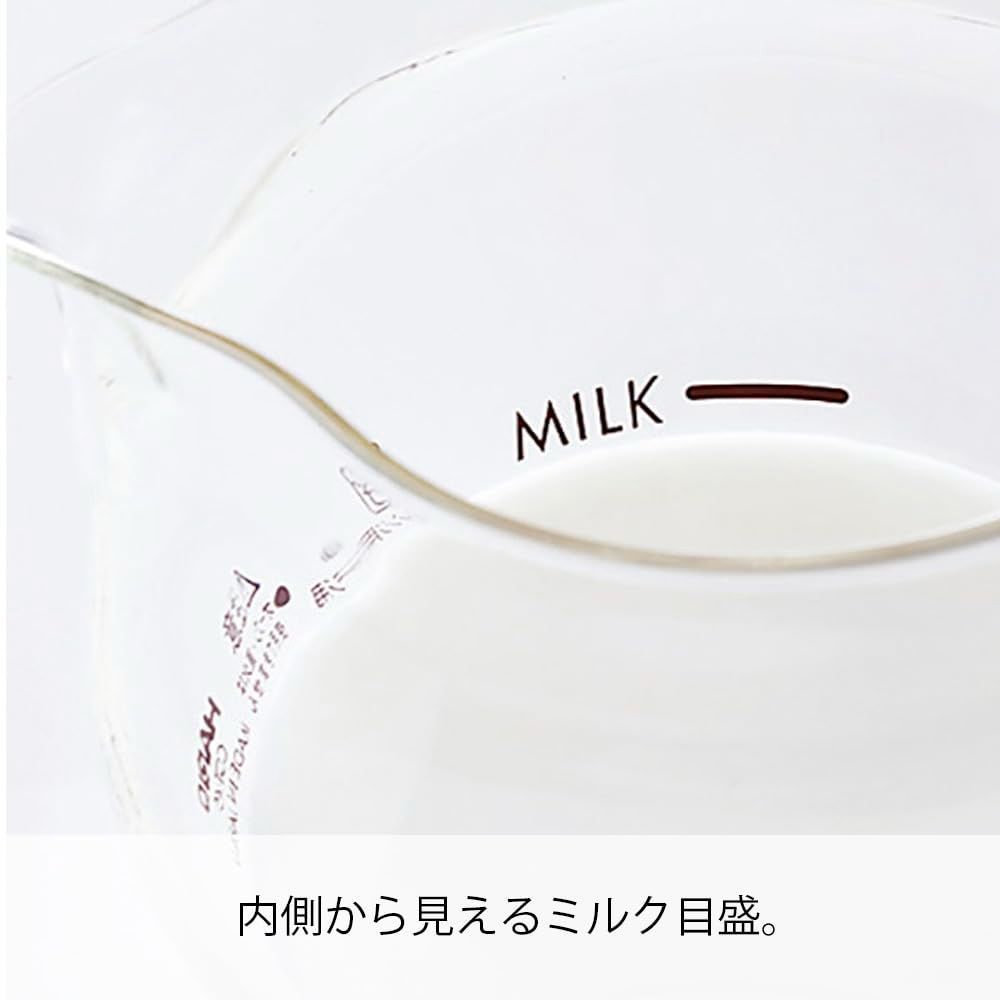 【商品詳細】 本体サイズ:幅14.5×奥行10.5×高20.5cm、口径:8.1cm、本体重量:約245g、容量:牛乳使用料100mL、本体材質:耐熱ガラス、日本製、フタ/ポリプロピレン、モーターハンドル/ABS樹脂、撹拌シャフト/ステンレス、中国製