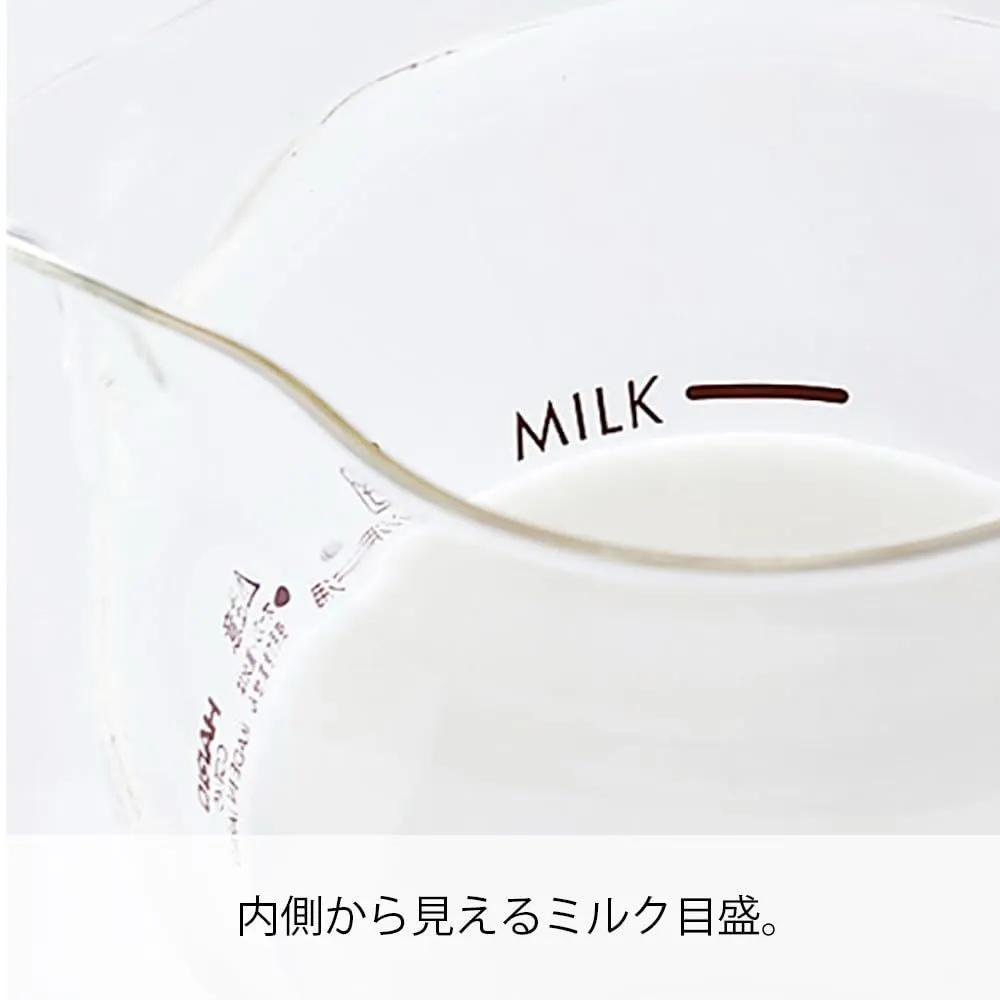 【使い方】 牛乳をガラスポットに入れて電子レンジで40~60℃に温めます。目安は、500Wで約50~60秒、600Wで約40~50秒。その後、スイッチを押し、30~40秒程度泡立てます。