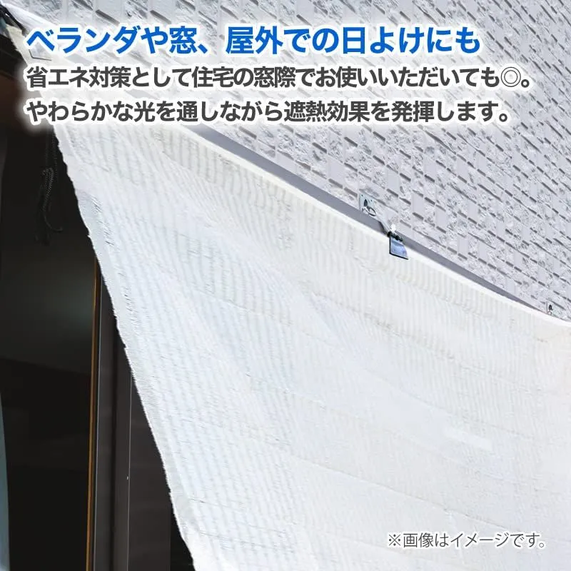 日本製の遮光、遮熱ネット。見た目の明るさは残したまま、温度上昇防止剤の効果で熱線をカットしネット下の環境を整えます。設置には別売りのネット専用吊り具や必要に応じロープ、支柱などをご用意ください。カットすると、切断面の糸がほつれる場合があります。