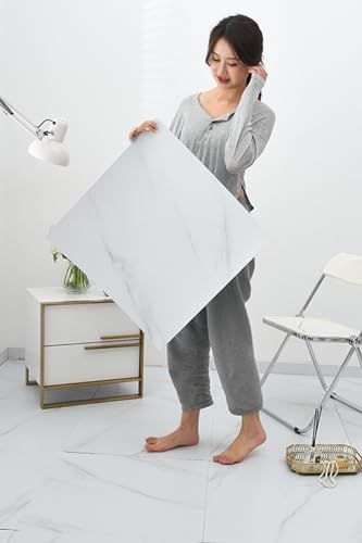 【耐久性強化】厚み1.2mmの大理石風フロアタイル。0.1mm UVコーティング表面エンボス加工で本物大理石の質感を再現し、耐荷重200kg/(土足・ペットOK)。厚手設計:競合品平均1mmより強度UP(折れ曲がり防止)。