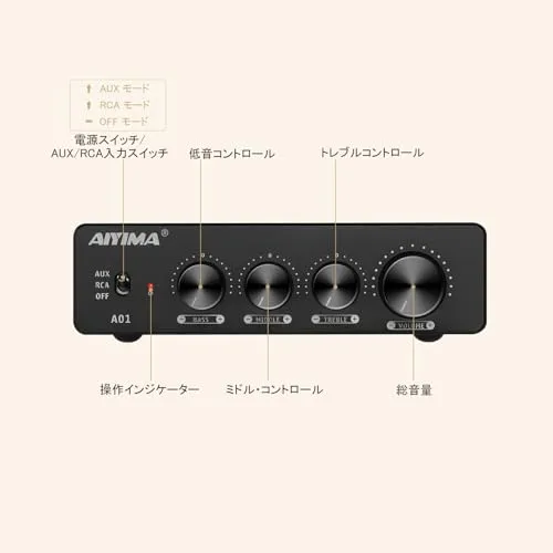 1.AIYIMA A01は、2.0/2.1chのベーシックなアンプです。 本製品は、TPA3116*2NE5532*3チップを使用し、シンプルな入力と洗練されたデザインのデスクトップ型ミニアンプです。 オーディオ好きにはたまらない一品です。