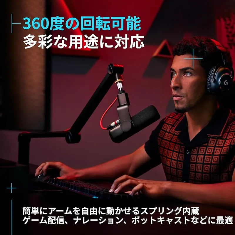簡単にアームを自由に動かせるスプリング内蔵型/ゲーム配信、ナレーション、ポッドキャストなどに最適