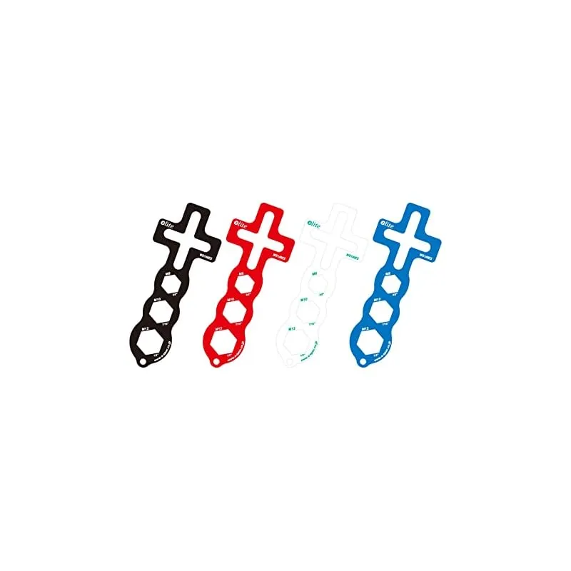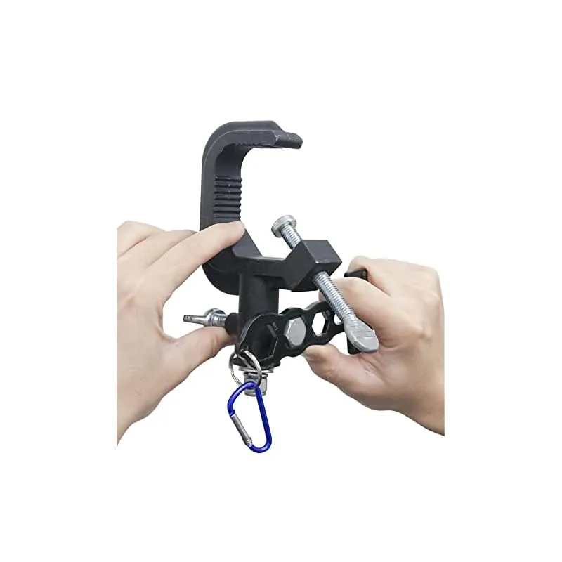 e-lite WS140ESは、照明の灯体を吊り込む現場で必要とされる機能がオールインワンで一式揃ったマルチスパナです。 ムービングライトのオメガブラケットの取り外しが容易に行えます。抜け止め用M12・M10・M8 六角ボルト、ウィングナットなど 固く締まったネジを緩める/締めることができます。 素材は熱処理されたカーボンスチールです。付属のカラビナでいつでも使えるように携帯することができます。
