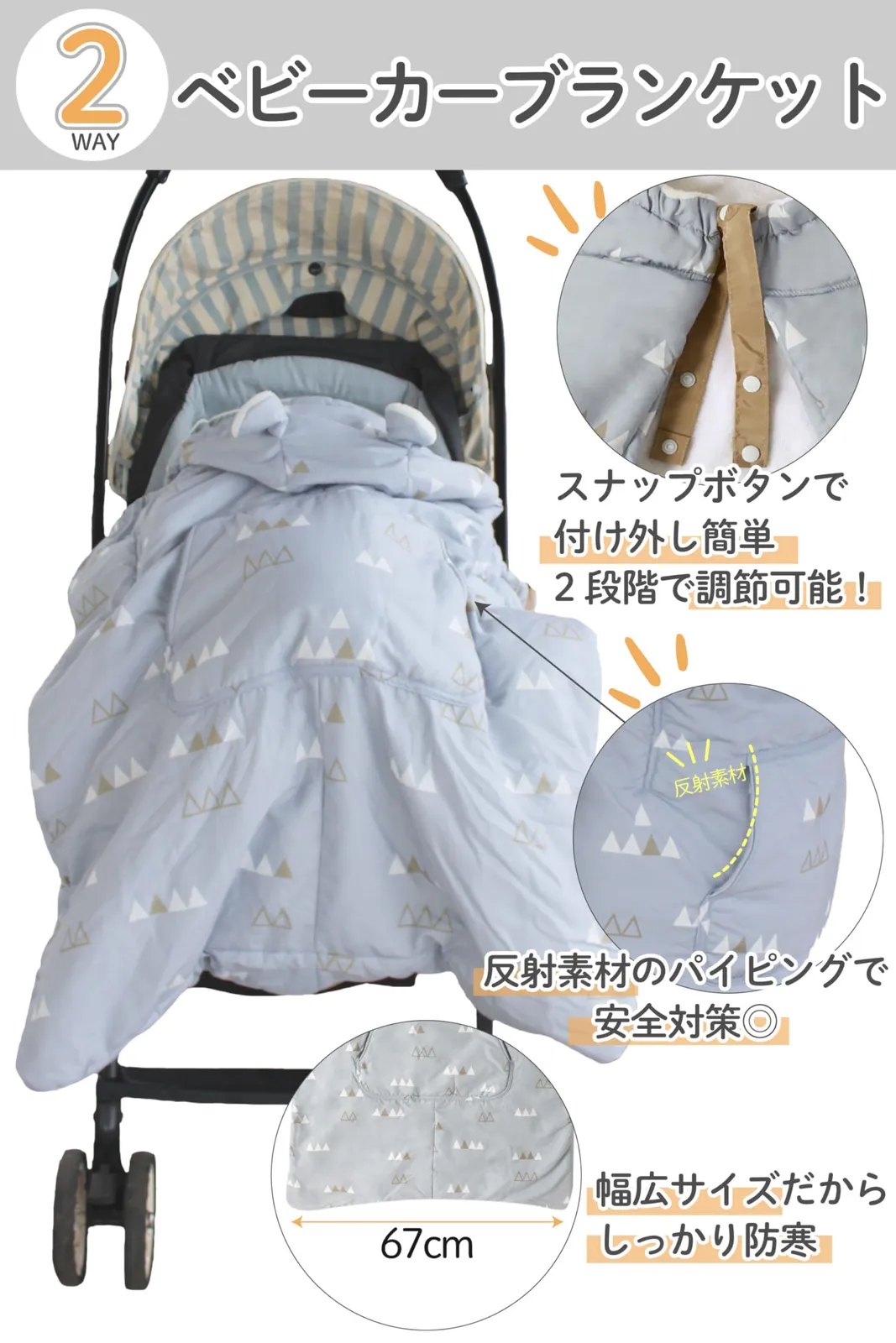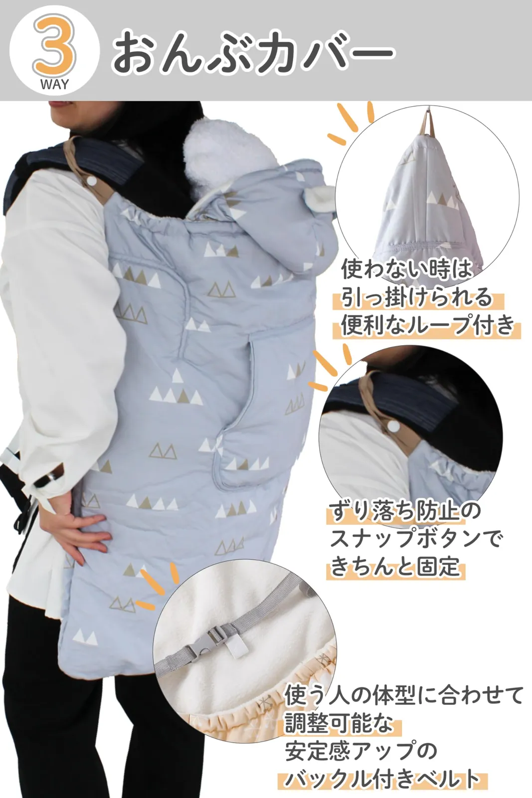 [あったかくて優しい素材の3WAYベビーマルチブランケット]抱っこ紐ケープ、ベビーカーブランケット、おんぶケープの3WAY仕様。用途に合わせた使い方で、寒い日も暖かく快適にお出かけできるベビーマルチブランケットです。
