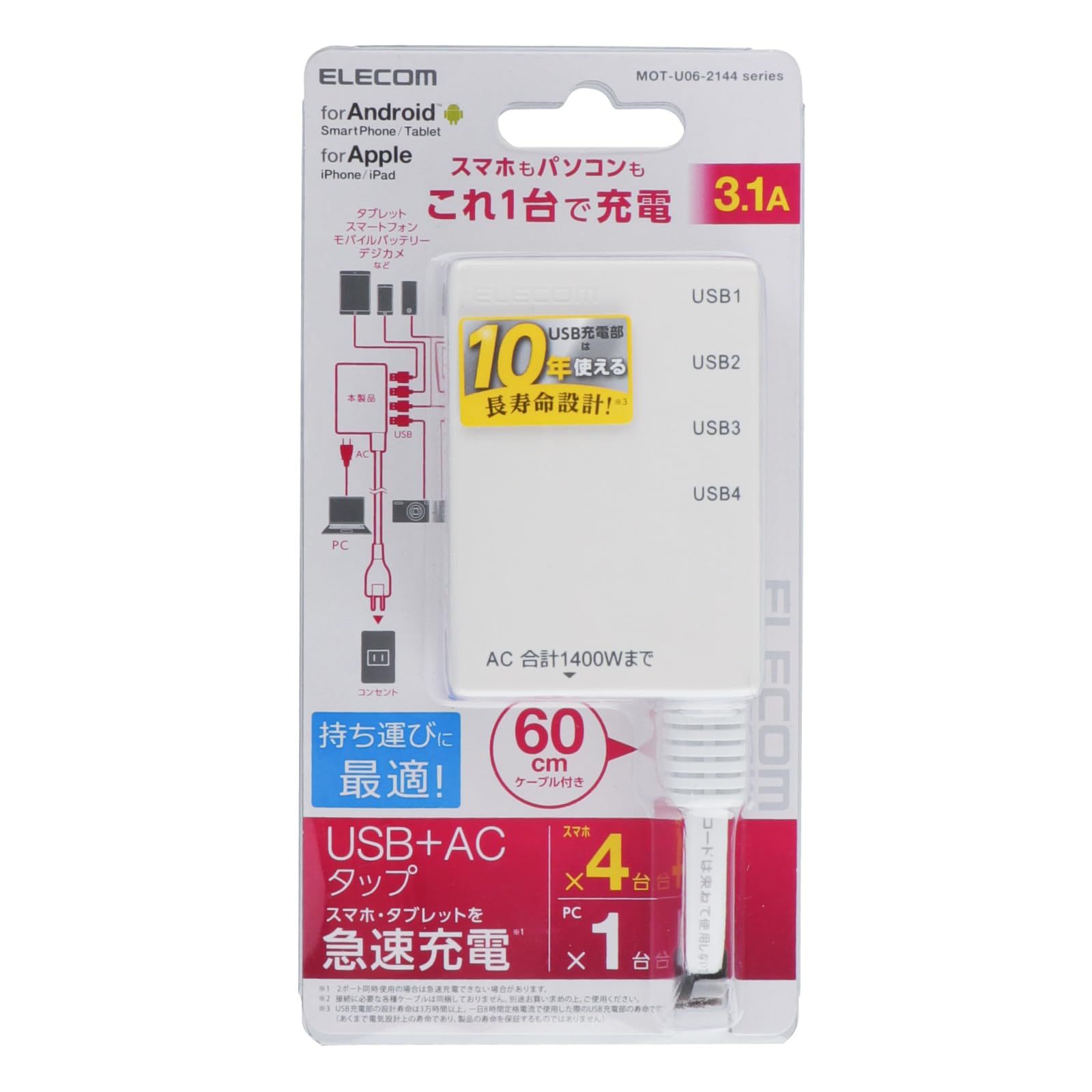 USB充電部に10年使える長寿命設計を実現しています