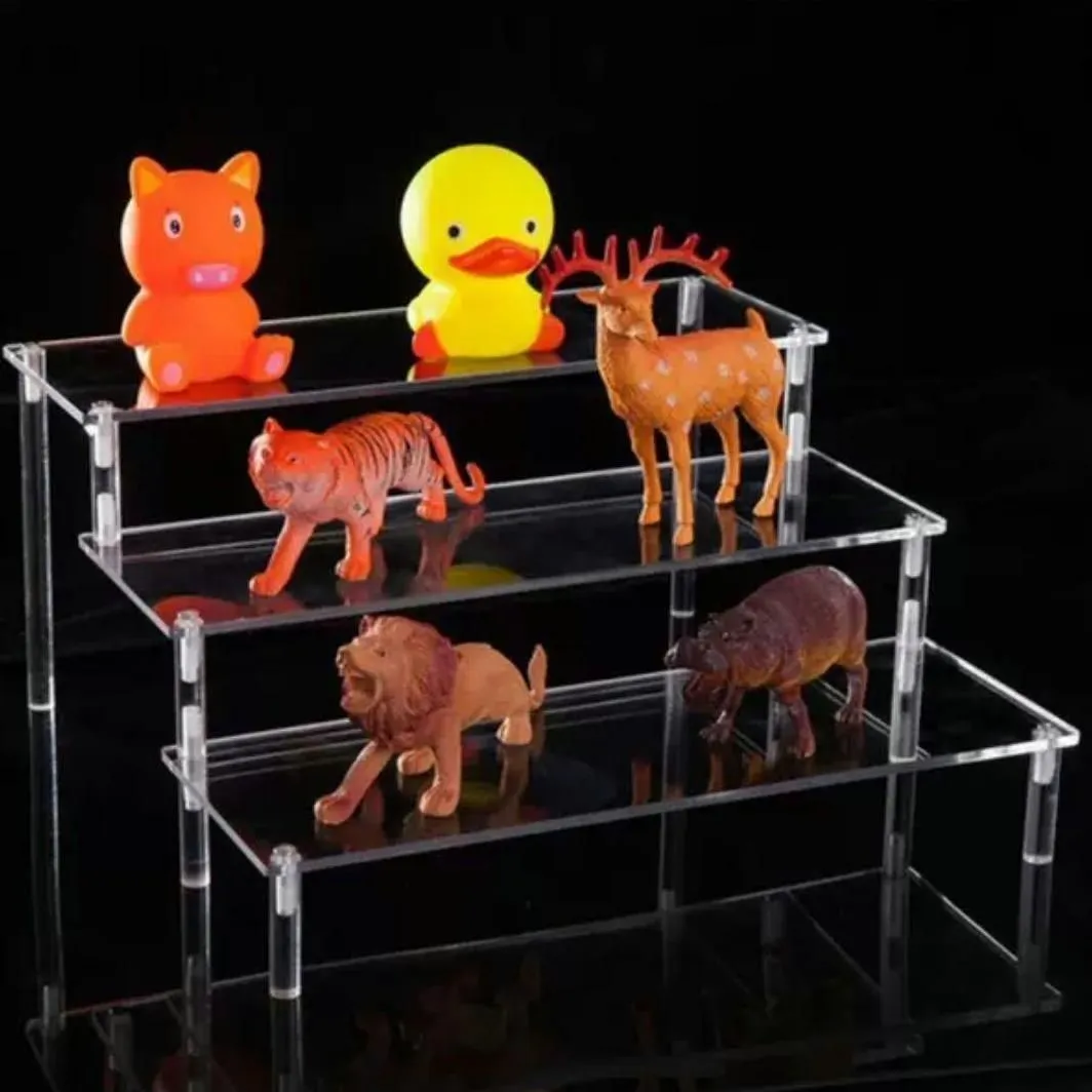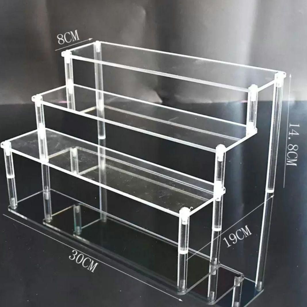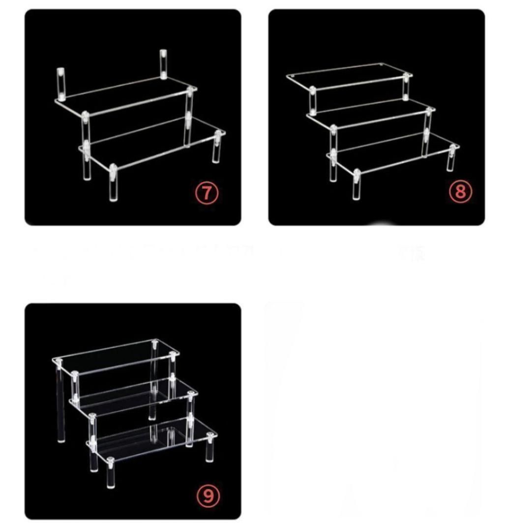 お気に入りのキャラクター、時計、アクセサリー、化粧品などを自分のアイデアに合わせて陳列できる3段のアクリルディスプレイスタンドです!