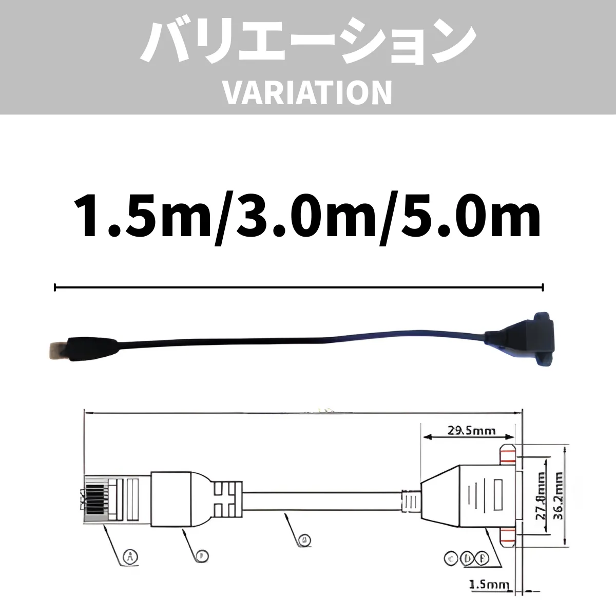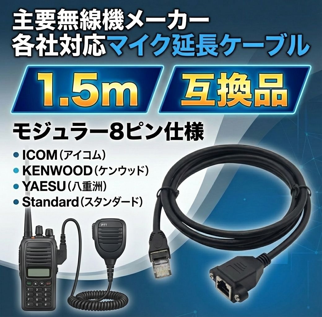 モジュラー8ピン仕様のマイク延長ケーブル(全長1.5m)互換品です。