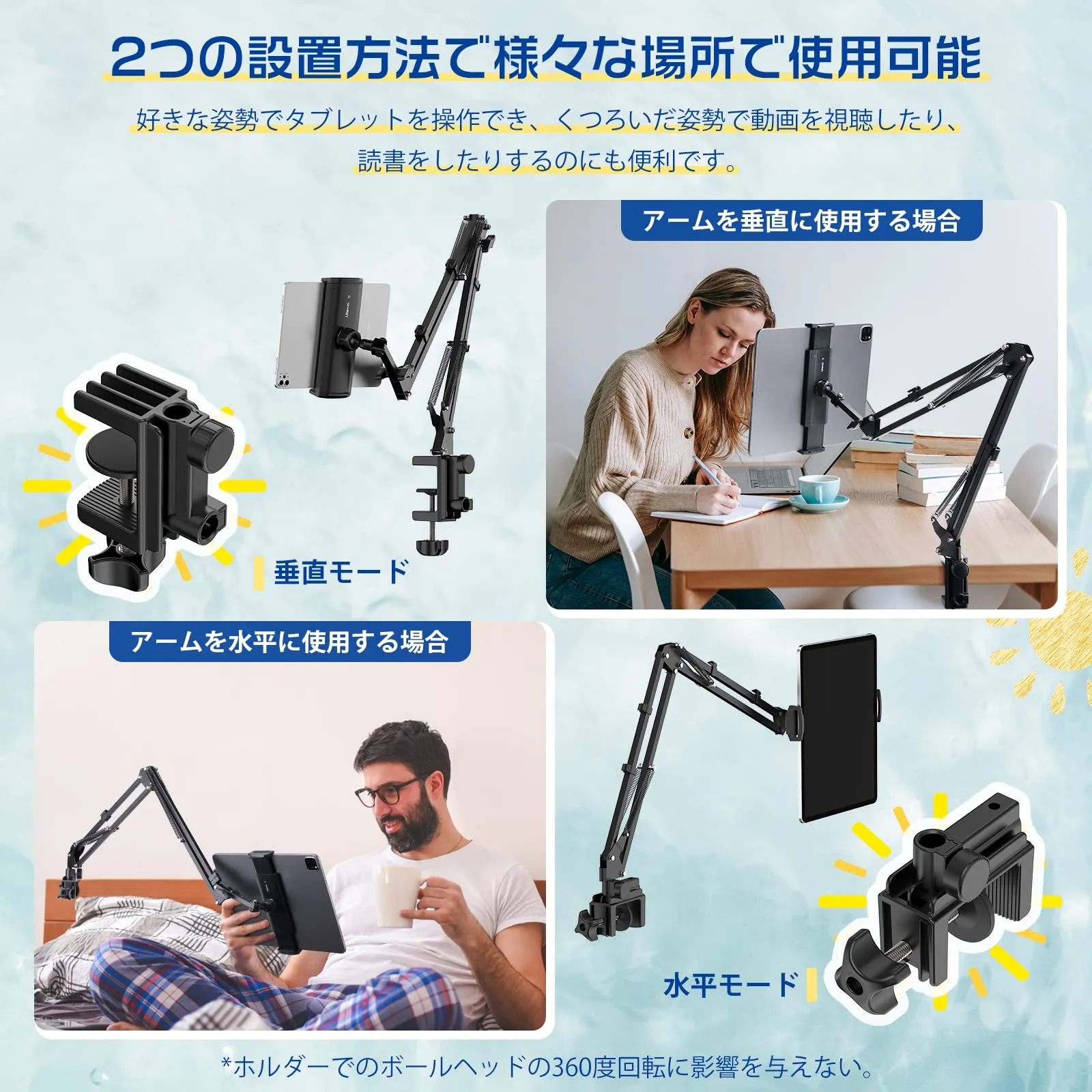 見やすい角度調整がより詳細に行うことができるタブレットアームになります