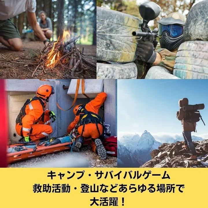 「様々な用途」サバイバルゲーム、登山、キャンプ、ハイキングなどのアウトドアはもちろん、災害救助、訓練、探検などの業務活動時にも大活躍します。