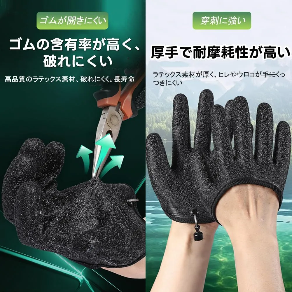 Makuki フィッシンググローブ 釣り手袋 耐切創 釣り用手袋 魚つかみ グローブ 滑り止め 高耐久 携帯便利 耐摩耗性 落下防止 マグネットフック付き 漁業・水産活動 魚捌き用