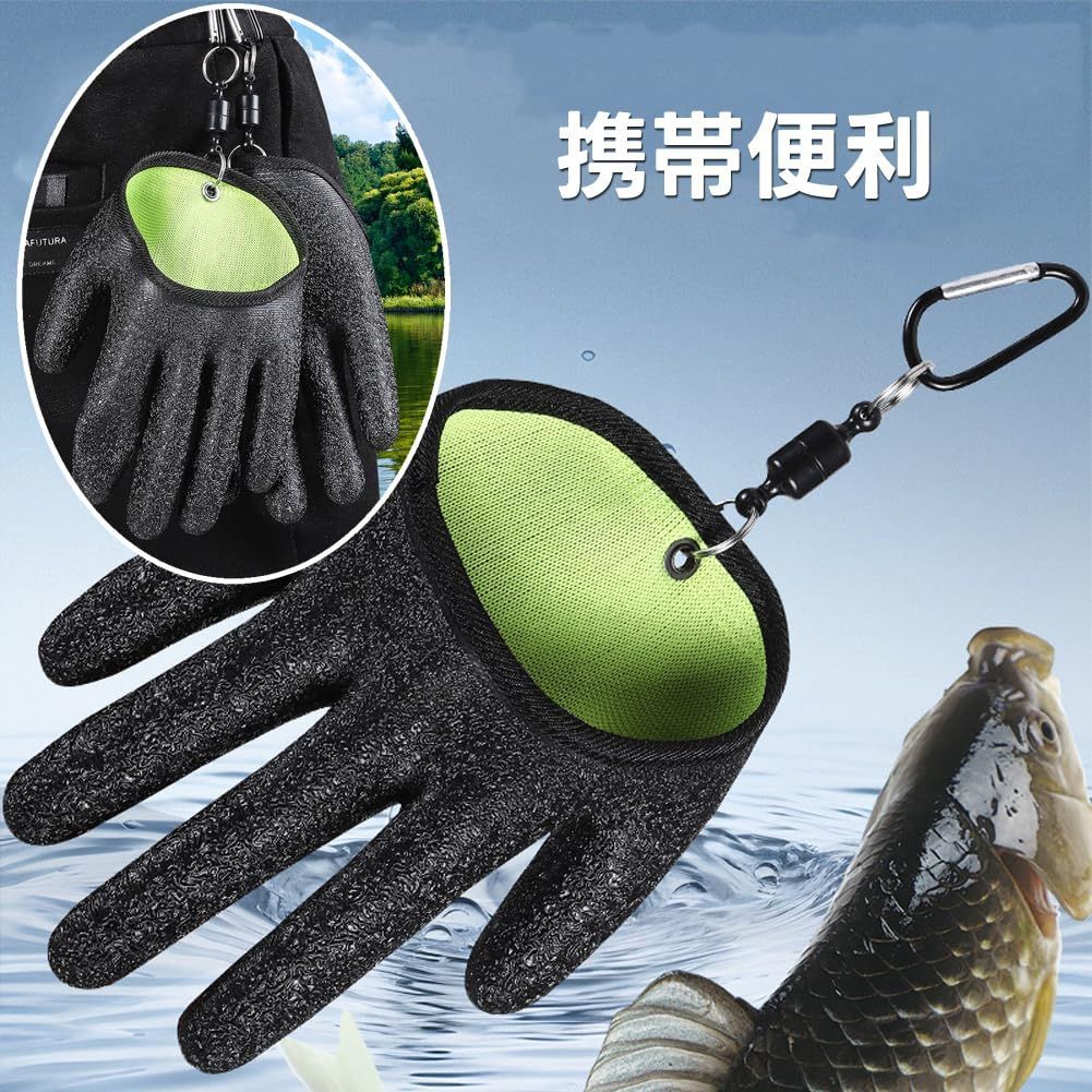 【フィッシンググローブ】フィッシンググローブは、手で魚を釣ることができます。また、ヒレに手が刺さらないよう手の甲は覆われておらず、脱着も簡単です。濡れても滑りにくく、魚体がツルツルだらけでも、海水で濡れていても、本格的なグリップ力を発揮します。