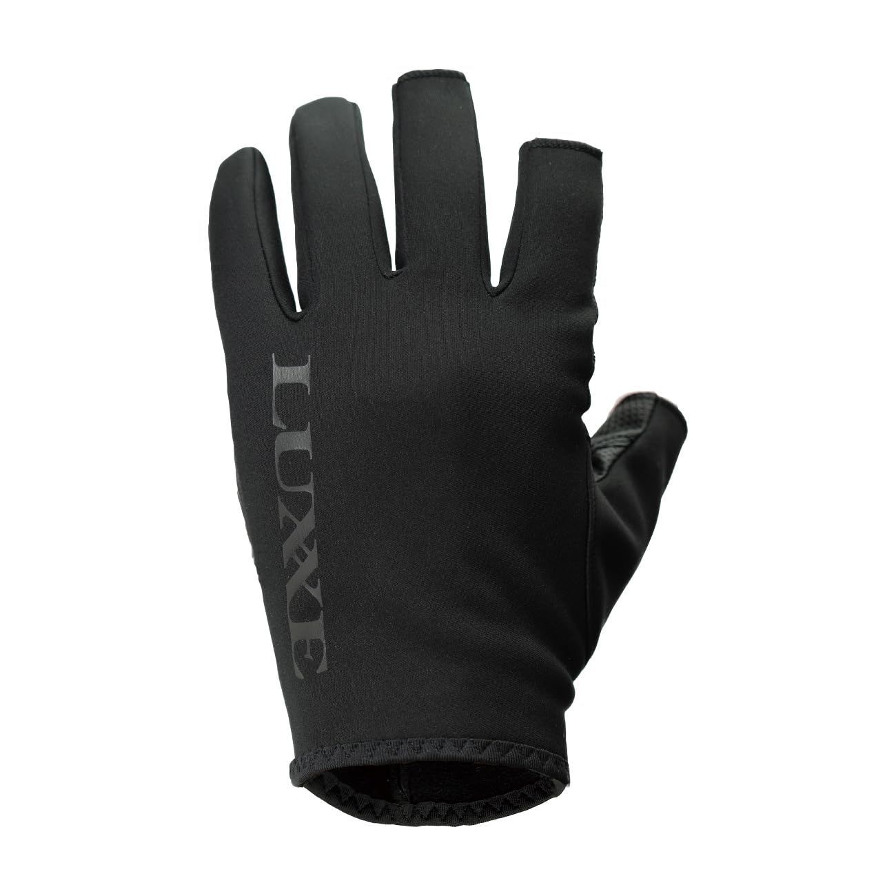 特徴1:防風性のある裏面起毛3レイヤー素材を手甲に採用/ 特徴2: ルアーチェンジしやすいスリーフィンガーカット。
