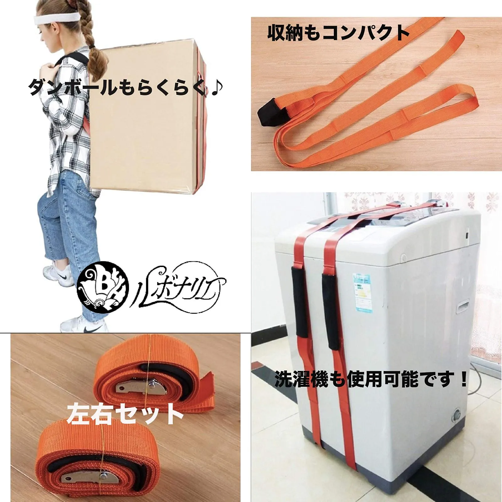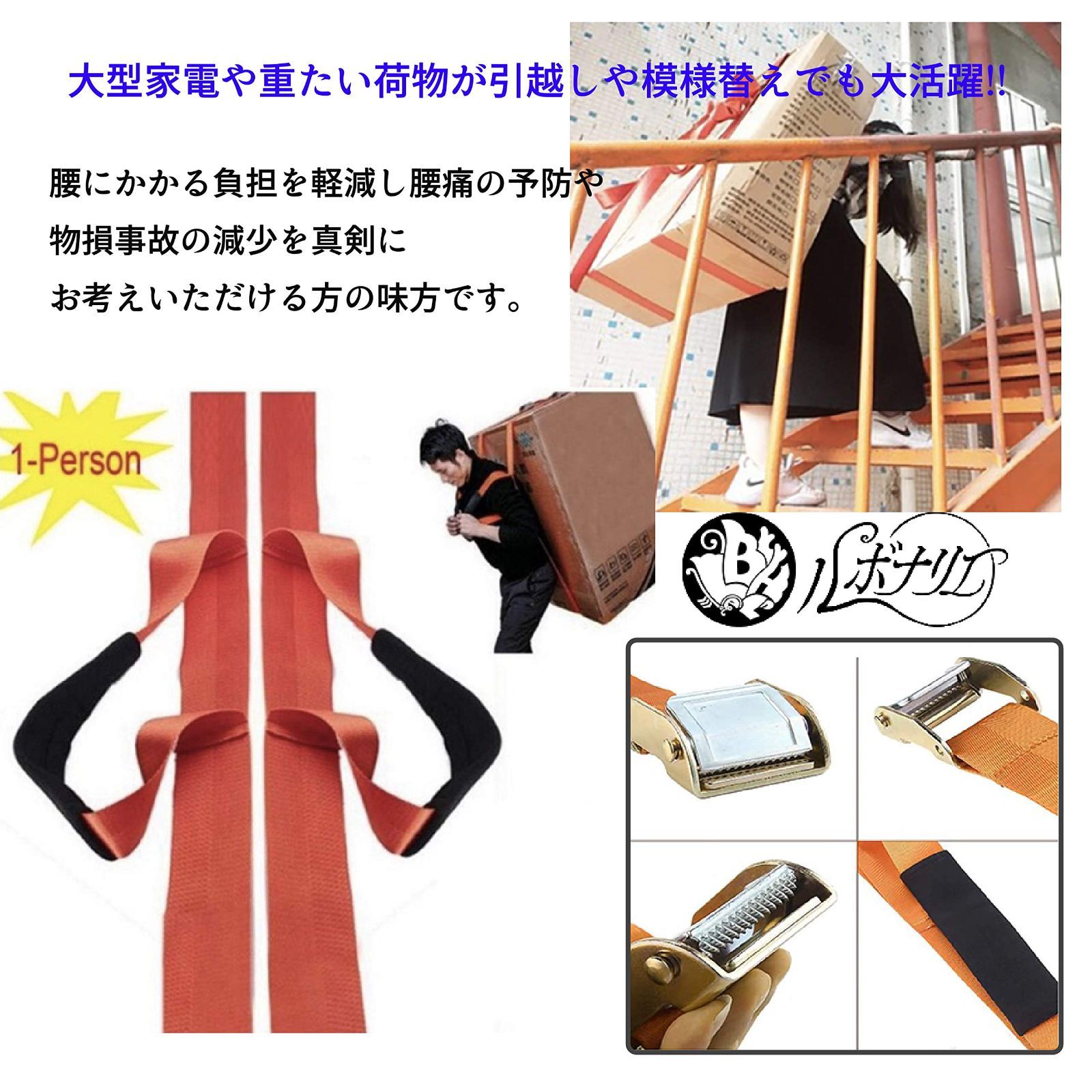 ルボナリエ 運搬ベルト 背負子 一人用 引っ越し 運搬 ベルトスリング 持ち上げ ストラップ キャリー 左右 2 本 (オレンジ)