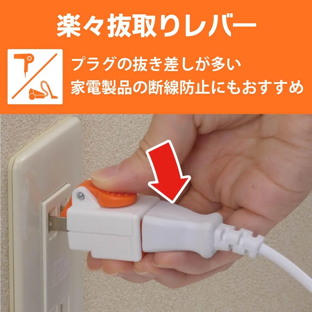 レバーを押すだけで、コンセントから楽に抜くことができます。