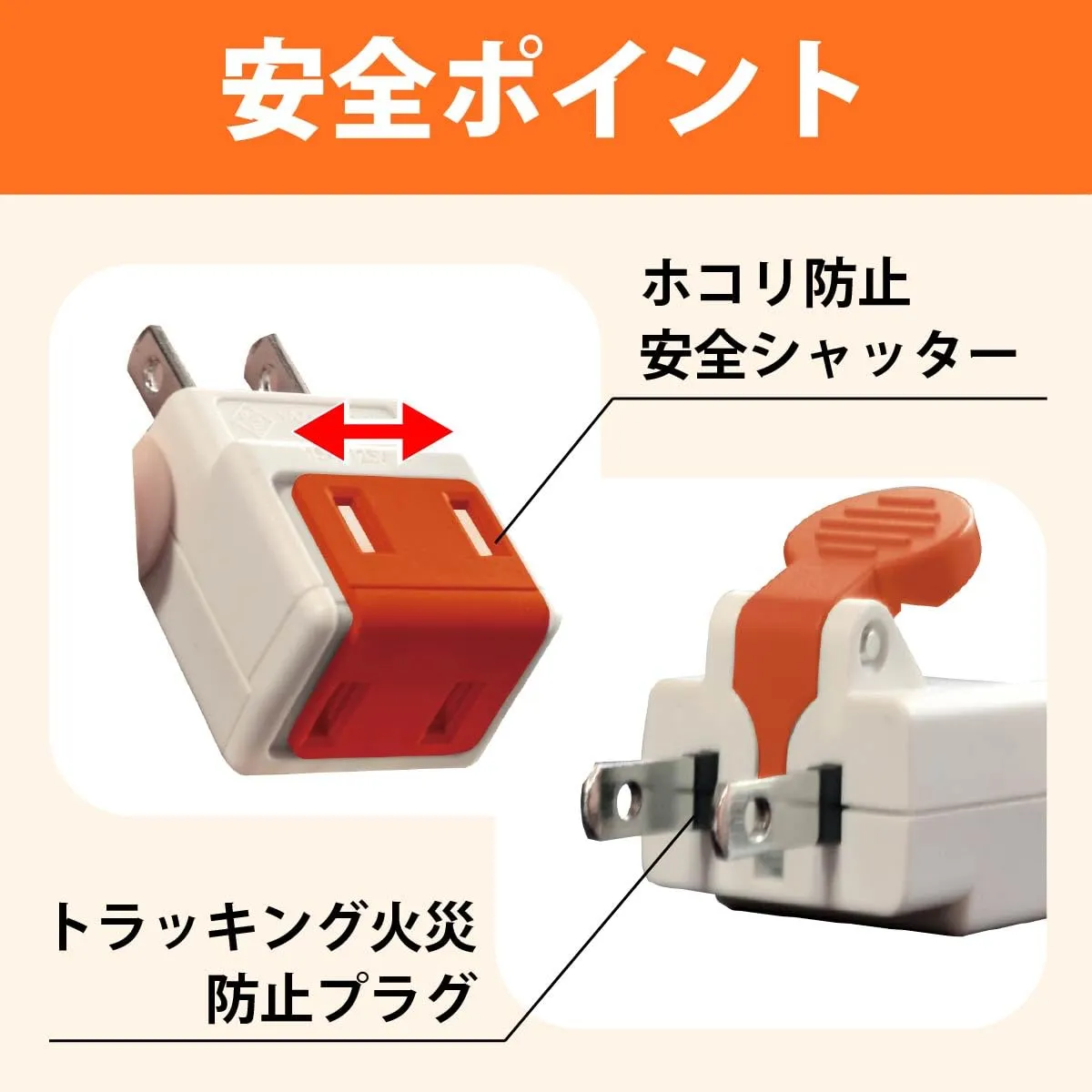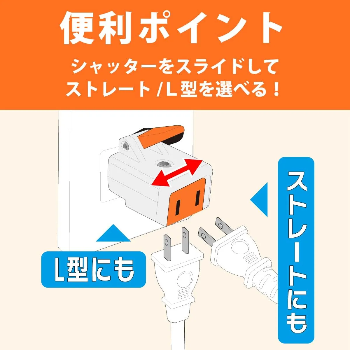スライド式ホコリ防止安全シャッター付き 使用していない差込口をしっかりガードします。