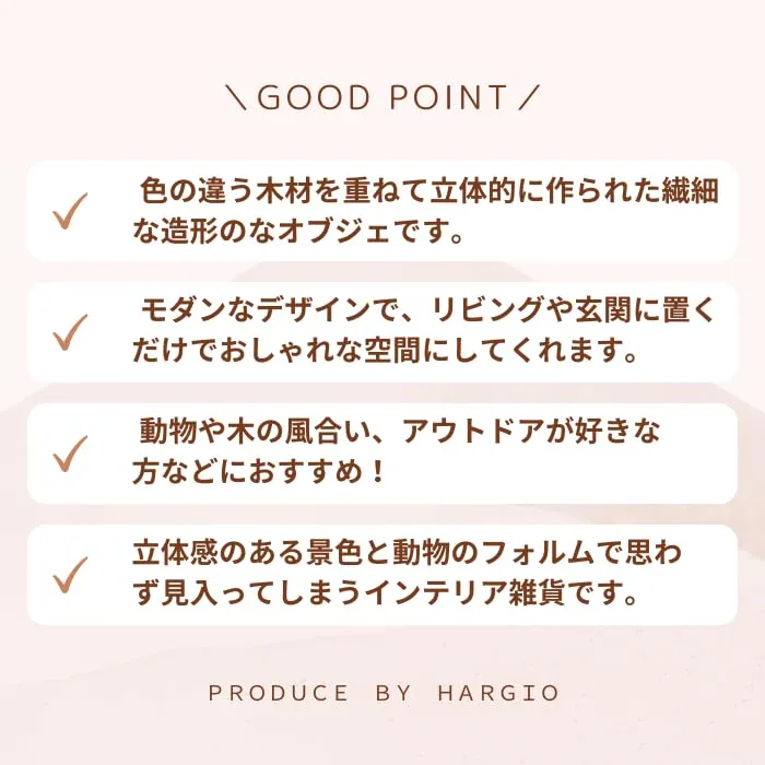 動物が好きな方や、木の質感が好きな方 おしゃれなインテリアが大好きな方におすすめ◎ ※商品により木目が異なります。