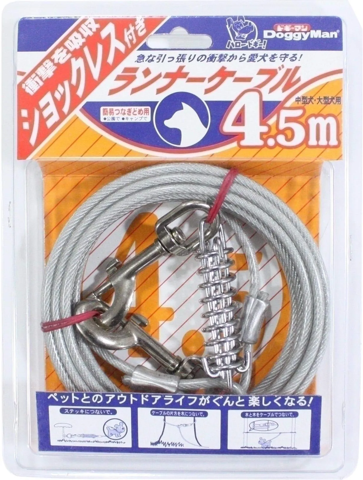 ドギーマン ランナーケーブル ショックレス付 シルバー 4.5m