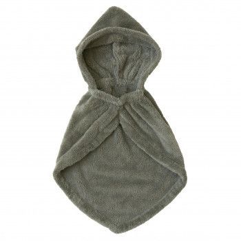 1)フードを後ろにして頭からかぶせます。