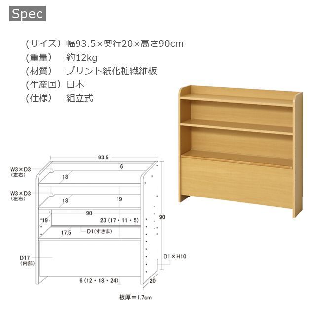 【商品サイズ】約 幅93.5×奥行20×高さ90cm