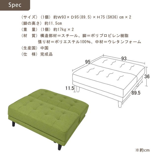 【商品サイズ】(1個) 約 横93×奥行95(89.5)×高さ75 (SH36) cm ×2