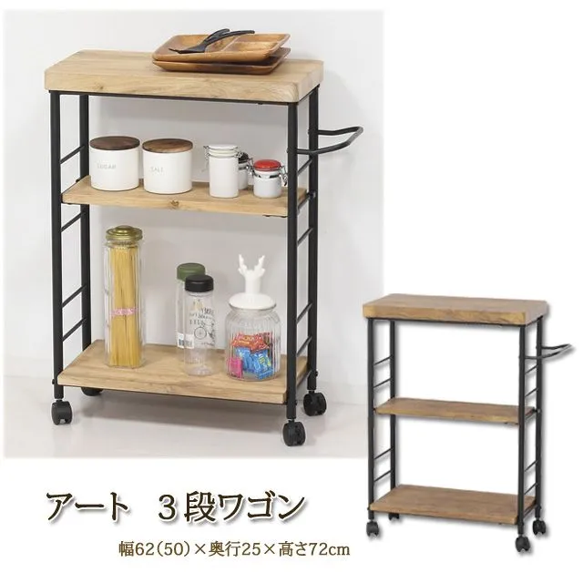 アート3段ワゴン (ヴィンテージブラウン)(モダンナチュラル)