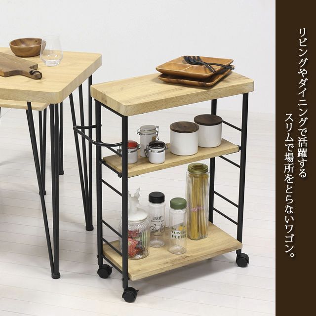 リビングやダイニングで活躍する、スリムで場所をとらないワゴンです。