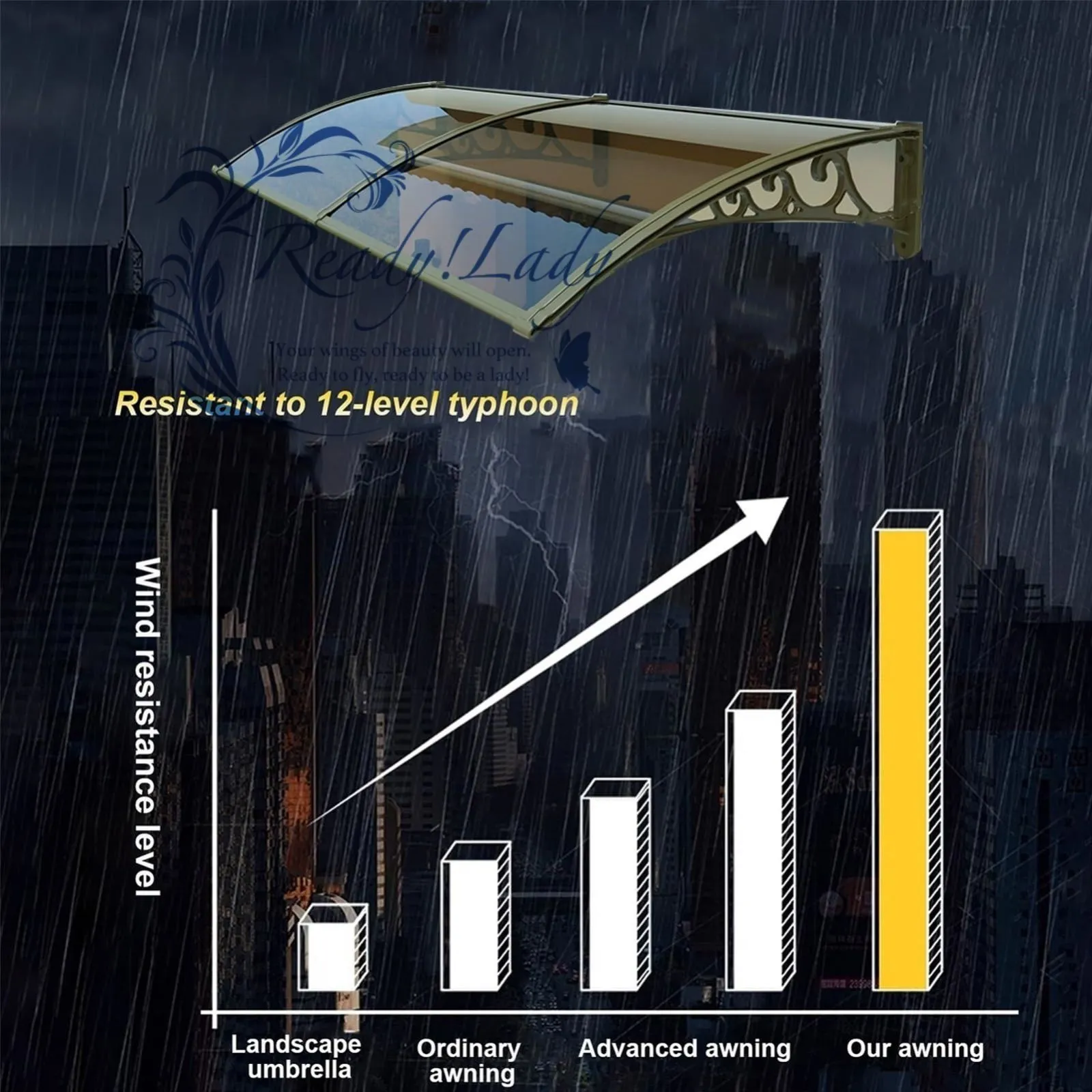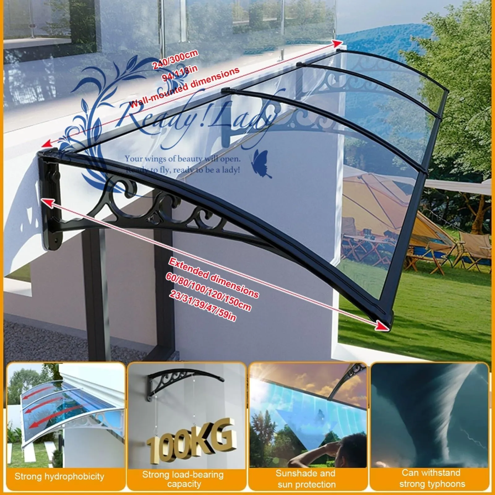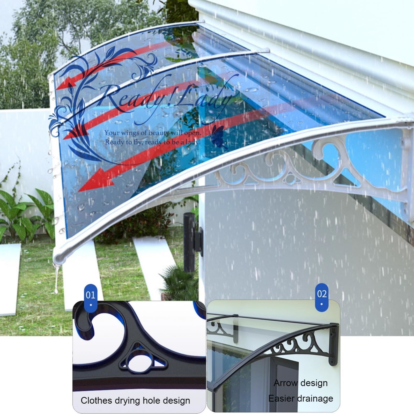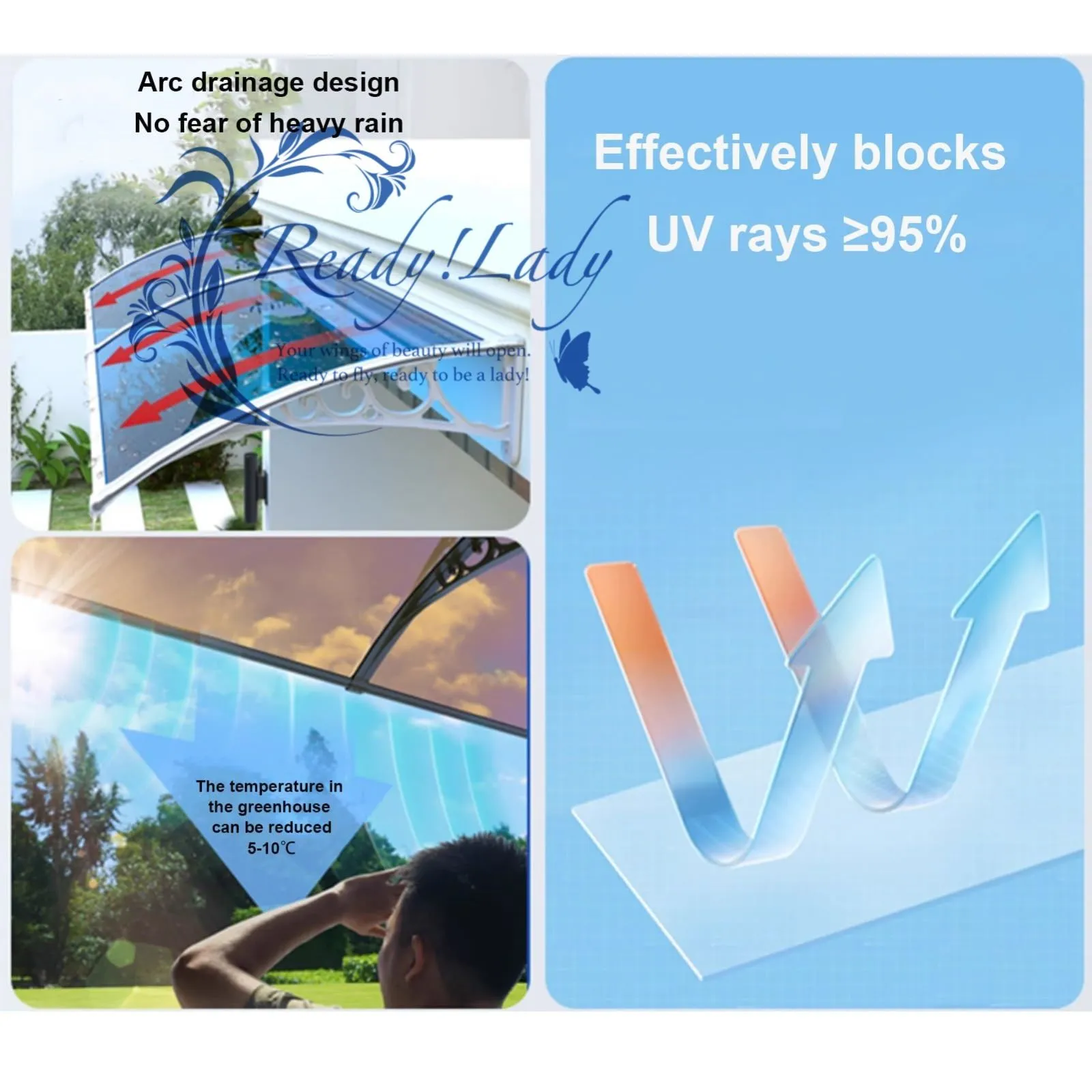 【高品質素材】フロントドアオーニング用の屋外日よけ、サンシェードは固体ポリカーボネート板でできており、耐衝撃性、断熱性、遮音性を効果的に高めることができます。 -40 ℃ (-40 ℉) から 120 ℃ (248 ℉) までの温度変化に耐えることができます。最大 95% の光線を効果的に遮断し、太陽光を楽しむためのより良い環境を作り出すことができます。