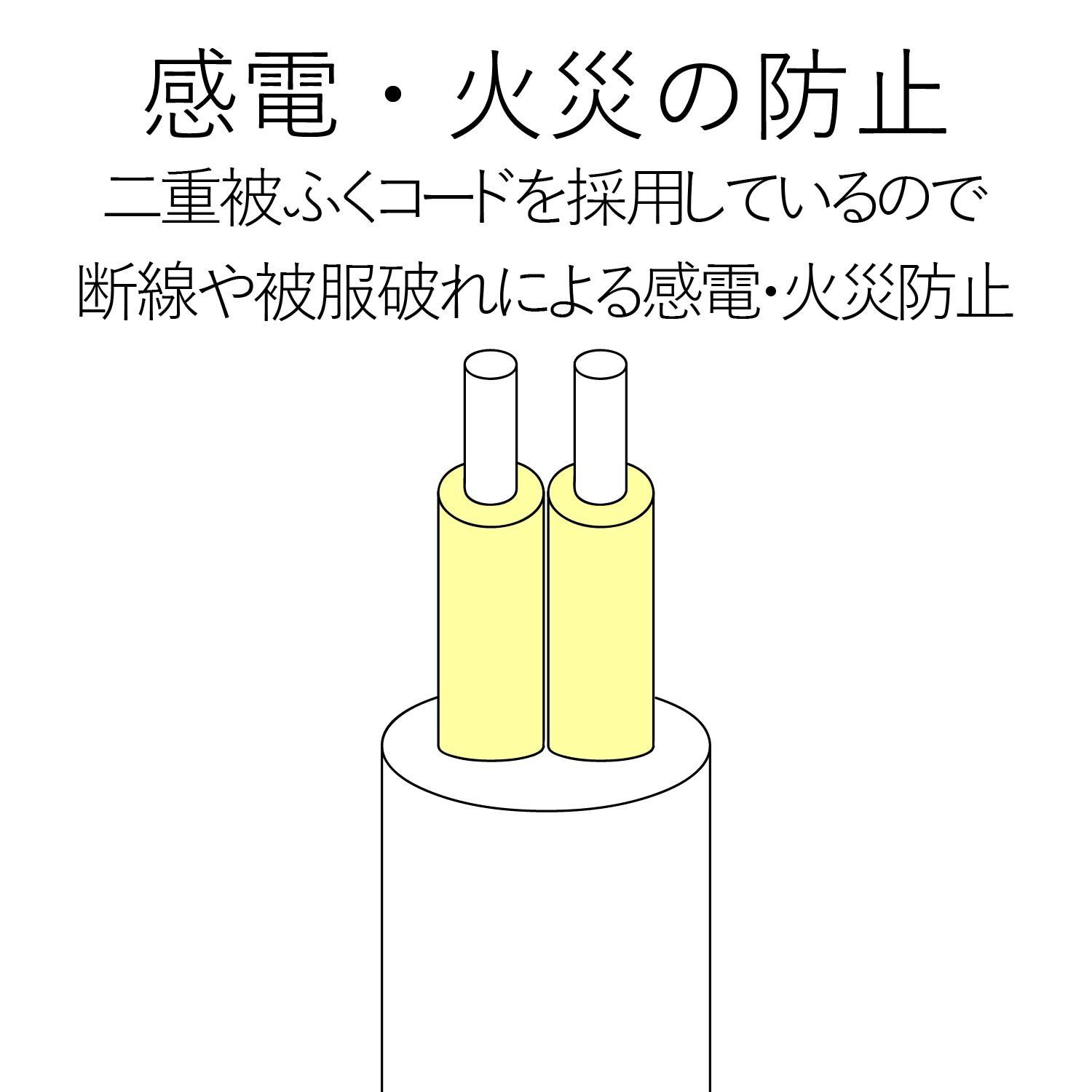 ■ 電源コードには一般社団法人日本配線システム工業会規格(JWDS0010)に適合した二重被ふくコードを採用しており、断線や被ふく破れによる感電・火災の防止に有効です。
