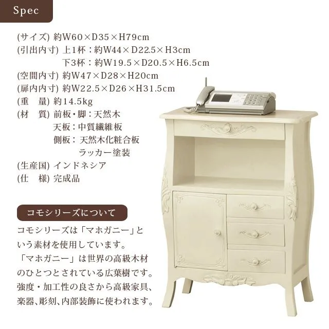 【コモ シリーズ】高級感があり、天板がレザー調のFAX台です。手彫り仕上げなど、細部まで工夫があります。
