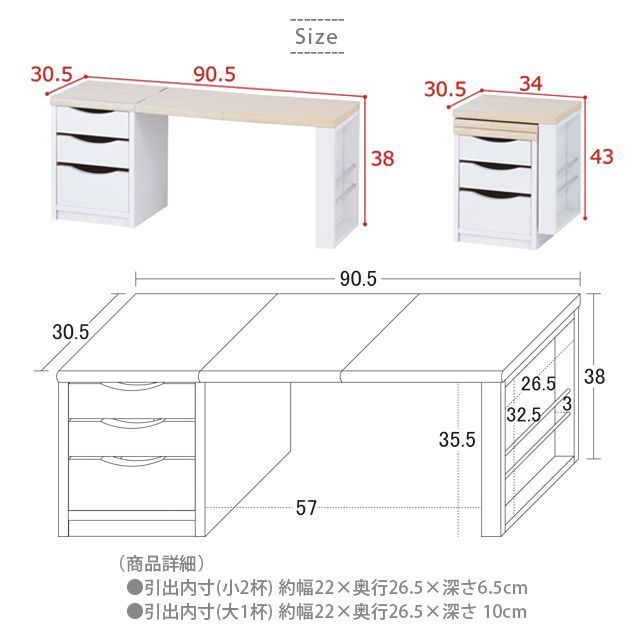 【引出内寸】 (小2杯):約 横22×奥行26.5×高さ6.5cm (大1杯):約 横22×奥行26.5×高さ10cm