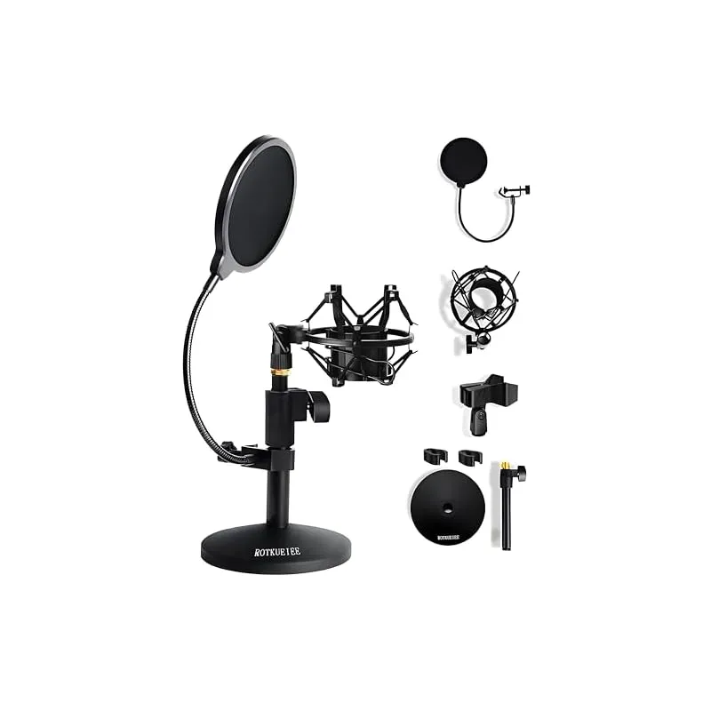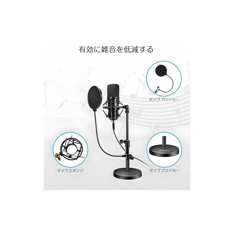 商品名:ROTKUEIEE 卓上マイクスタンド&ショックマウント&ポップガード デスクトップマイクスタンドセット 高さ調節可能 振動防止 コンデンサーマイク用 ノイズ低減 伸縮 会議 スピーチ 放送 カラオケ レコーディングなどに適用 マイクホルダー付