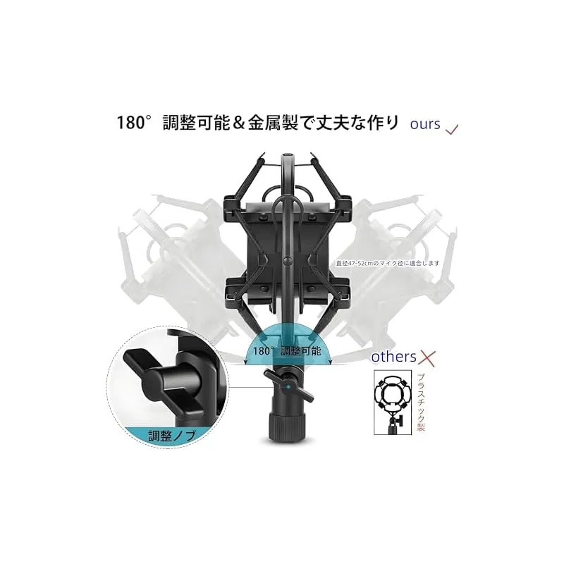 【高品質の材料を採用、耐久性抜群】マイクスタンドの中心の柱は亜鉛合金で作られております。錆しにくく、破損しにくく、変形しないです。しっかりとした品質の素材を使用している製品は耐久性が耐久性が優れて、マイクスタンドは乱暴に扱わなければ十年以上は使用できます。