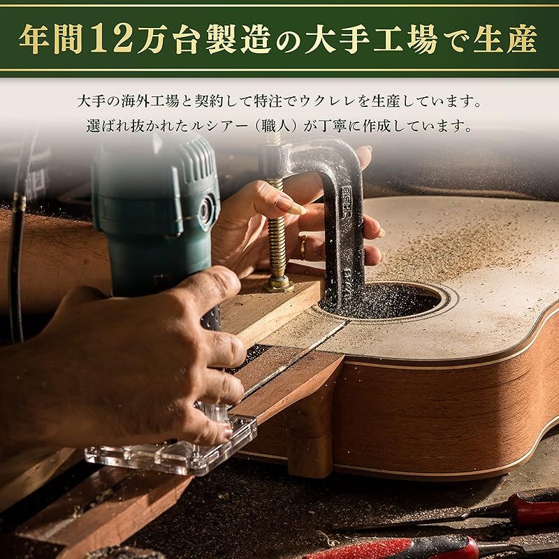 【サペリマホガニー材使用】ボデイ材は高級楽器にも使われているサペリマホガニーを使用。通常マホガニーよりも柔らかい木材なので、ウクレレらしいふくよかで柔らかい音を楽しめます。