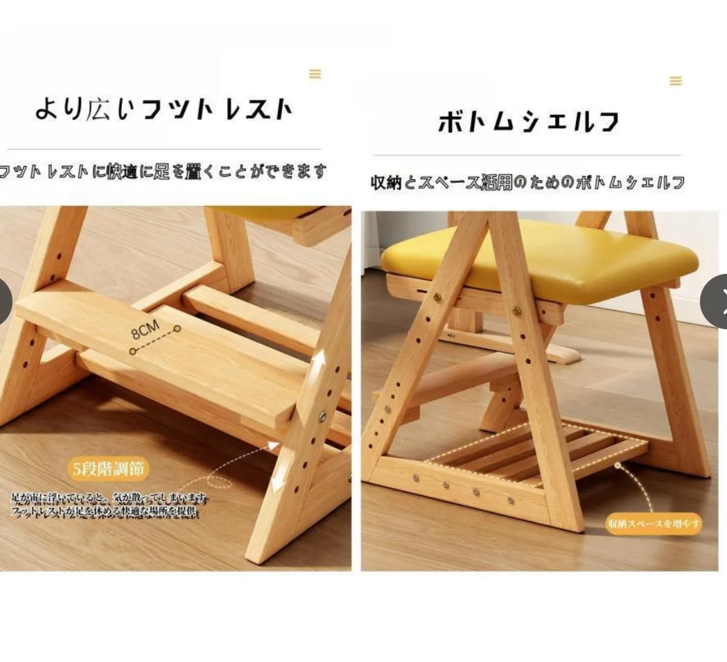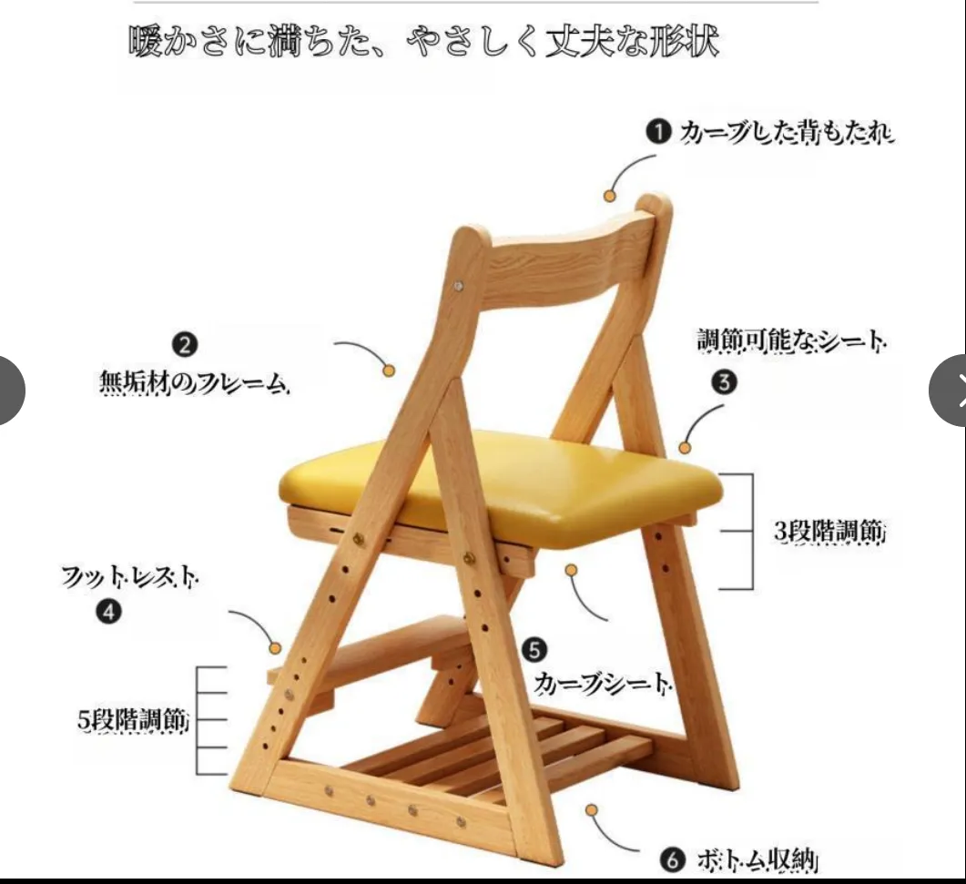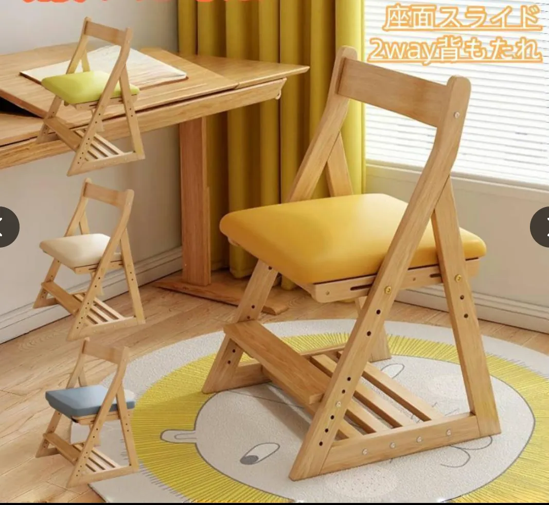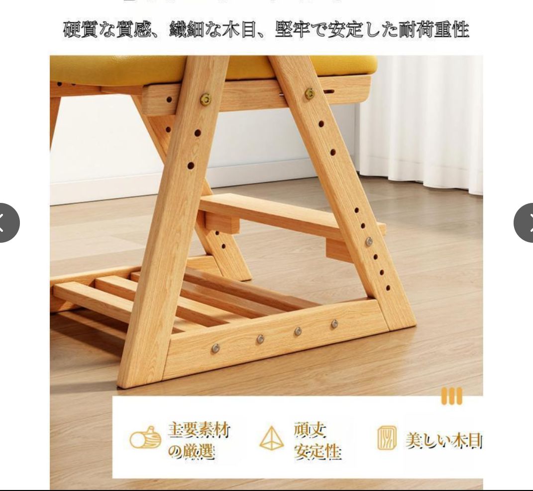 耐荷重は約100kgで、大人でも安心して使えます。材料には松の木を使用し、耐荷重能力が高く、安定性に優れ揺れにくい。お手入れも簡単で、干布で拭くだけできれいになります。ダイニングチェアや勉強用チェアとしても広く使えます