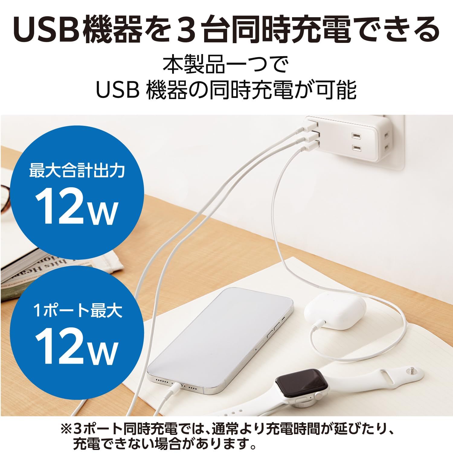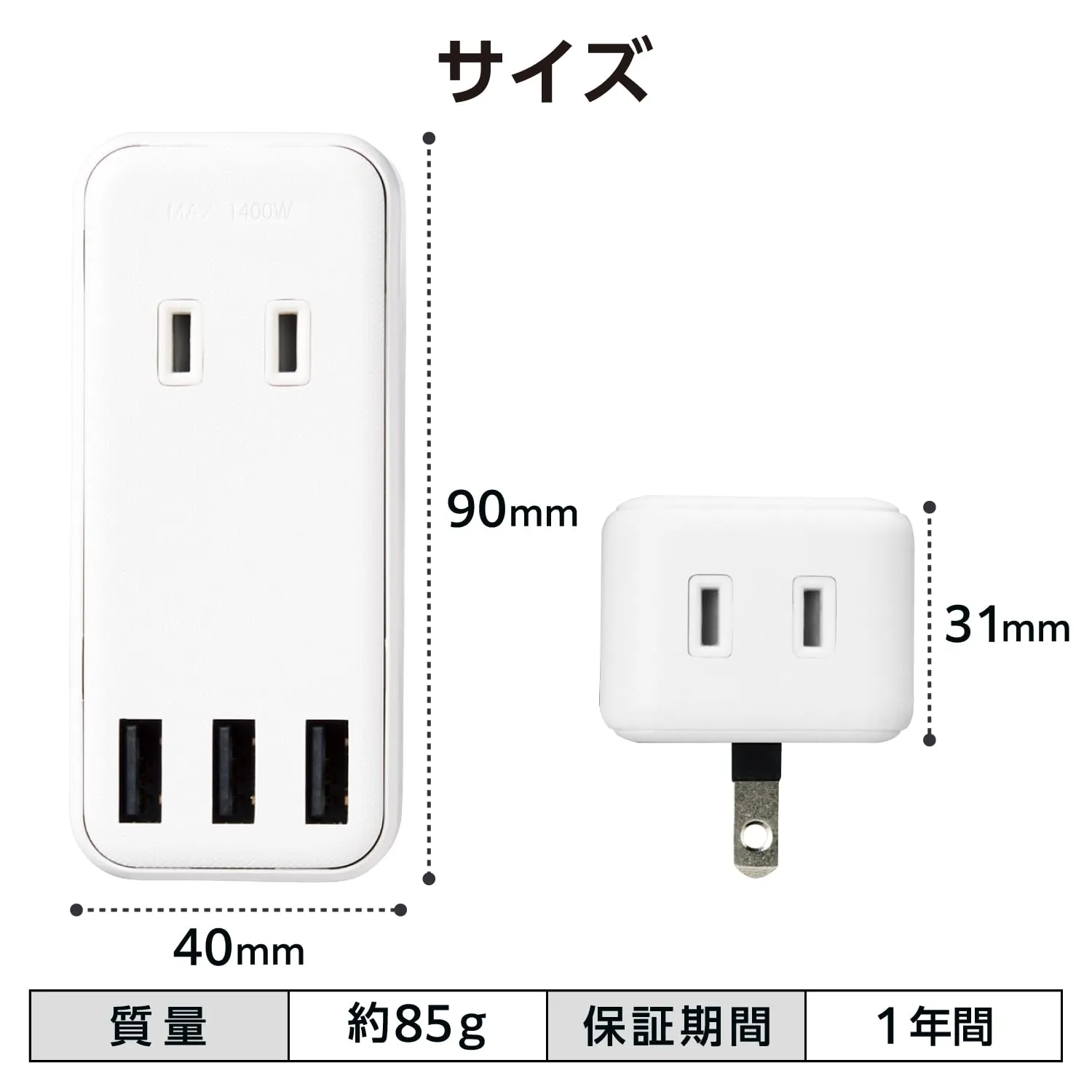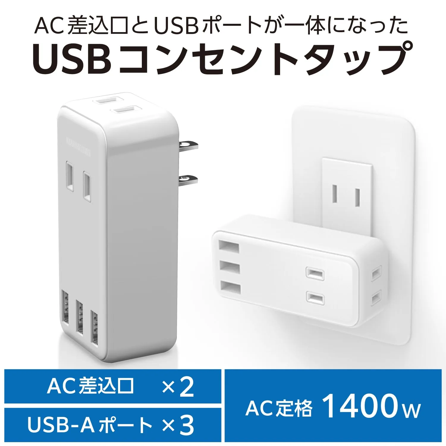 2つのAC差込口と3つのUSBポートを搭載したUSBタップです