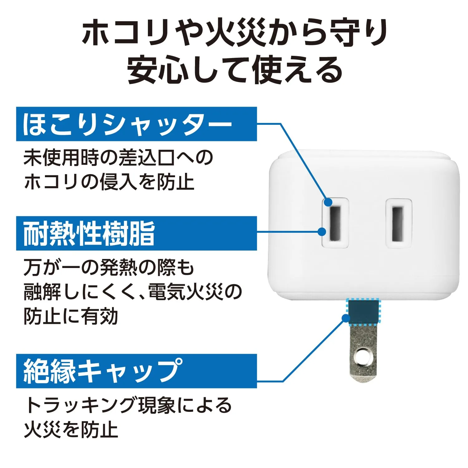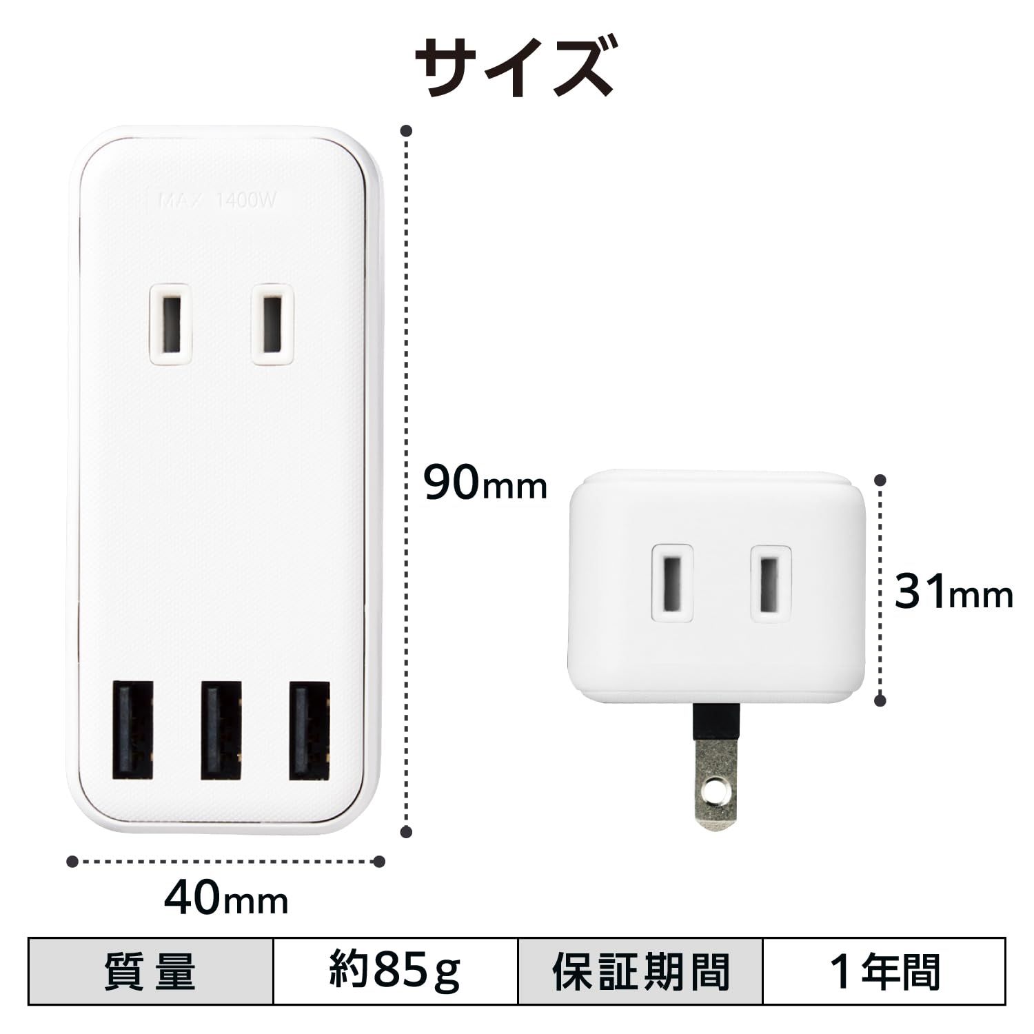 2極コンセントを利用して動作する機器やUSB-Aポートを利用して給電または充電する機器